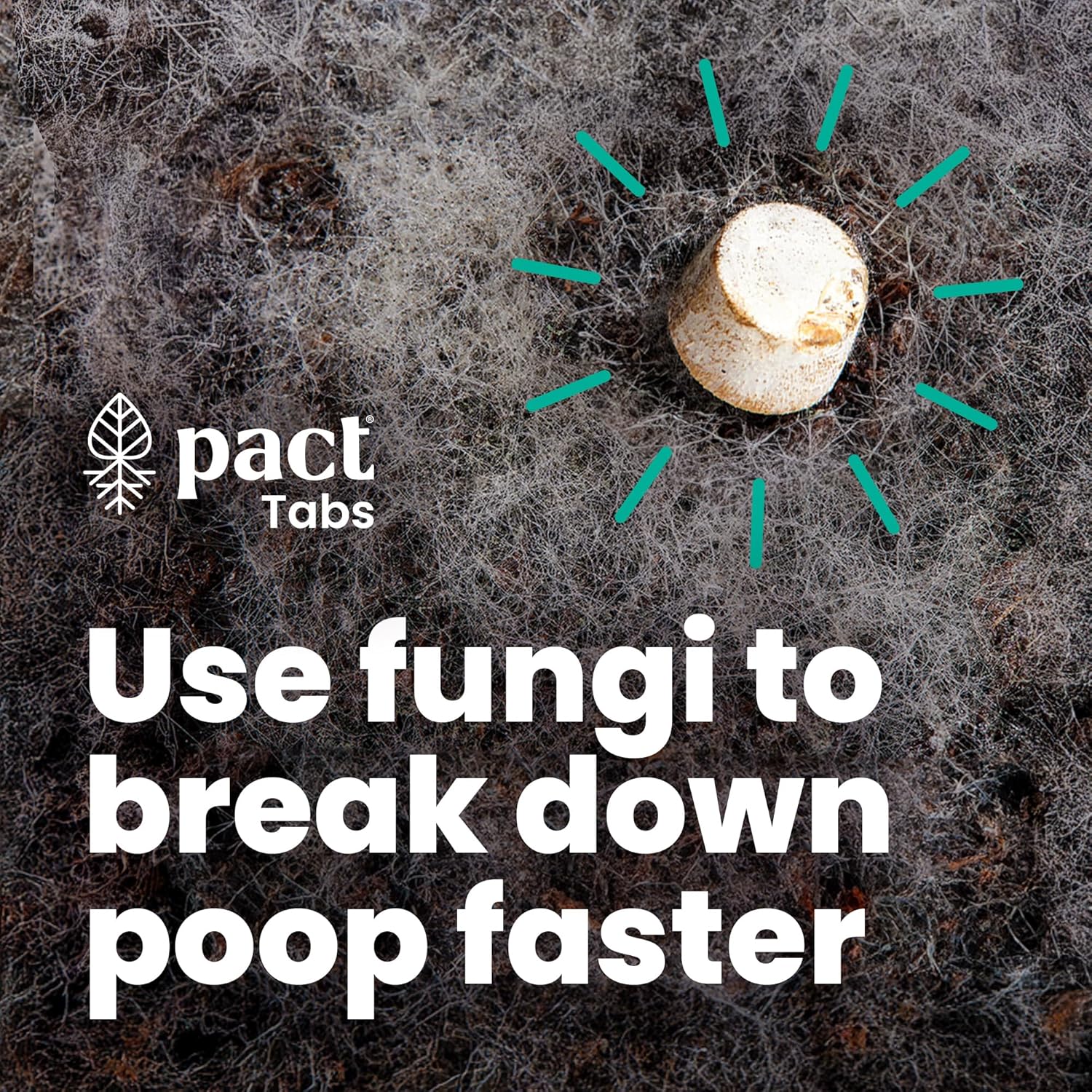 PACT Tabs use mycelium from fungi to naturally break down poop faster and kill harmful bacteria.