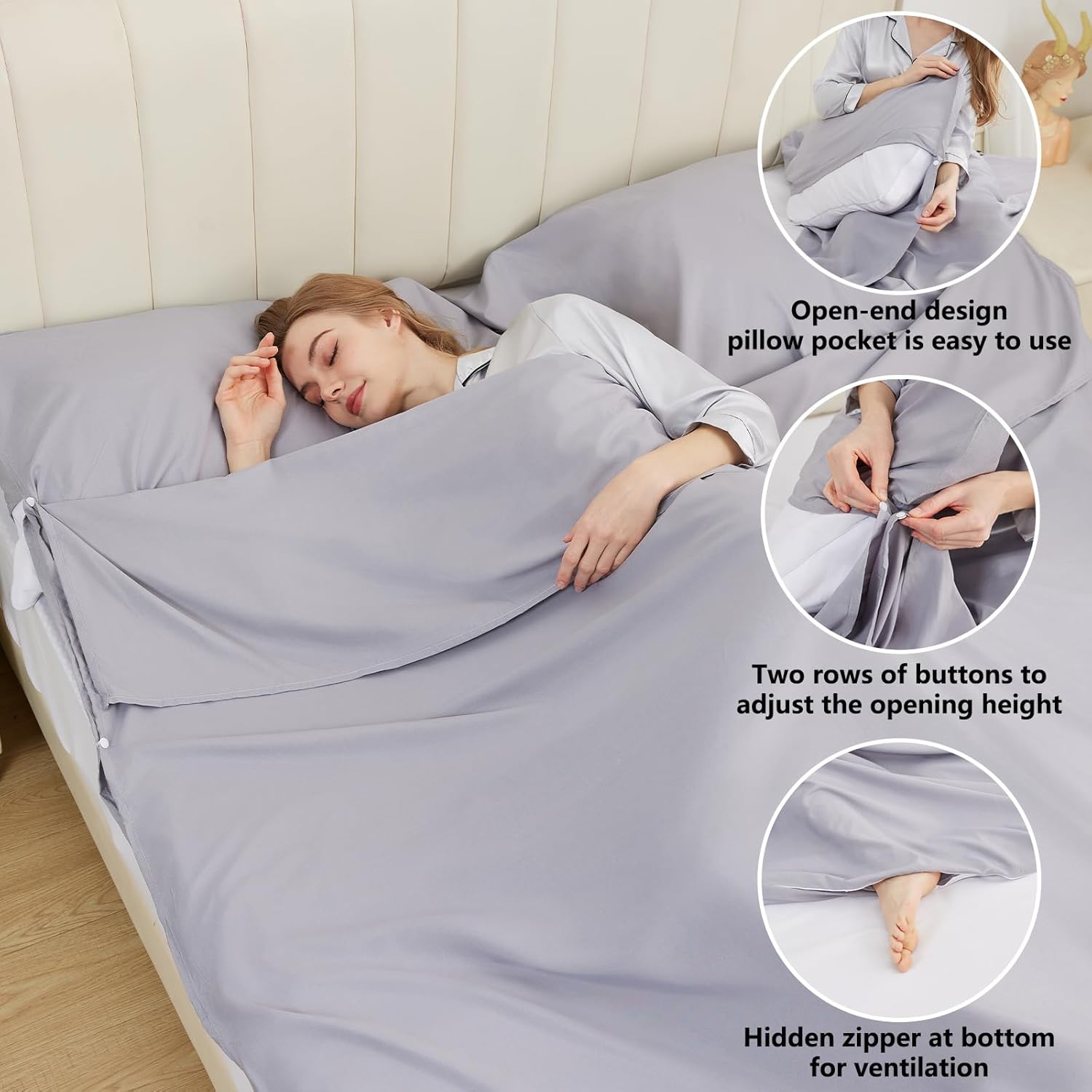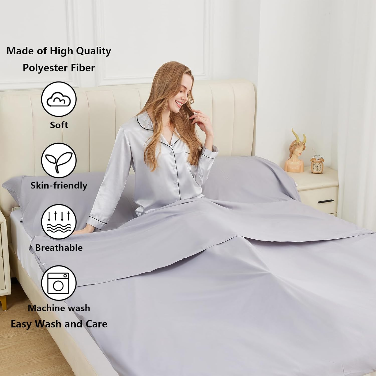 Versatile Design: The liner works as a summer camping sleeping bag with a pillow pocket that can stuff clothes to use as a pillow. It also serves as travel bedding, replacing the need to take sheet, pillowcase and blanket. Fits most hotel bed sizes