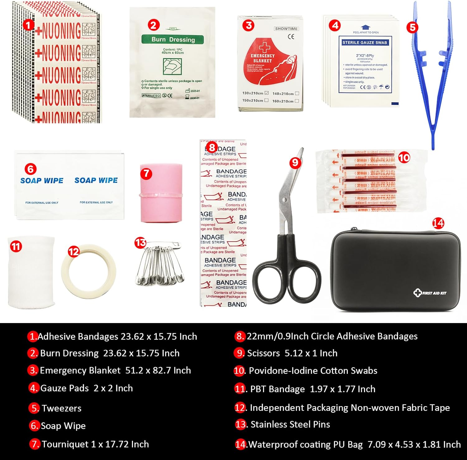 PROFESSIONAL-GRADE COMPLETE SUPPLIES: Packed with over quality essentials including assorted bandages,soap wipe, povidone-iodine cotton swabs,tweezers, and a tourniquet to handle cuts, scrapes, sprains, and emergency bleeding effectively.