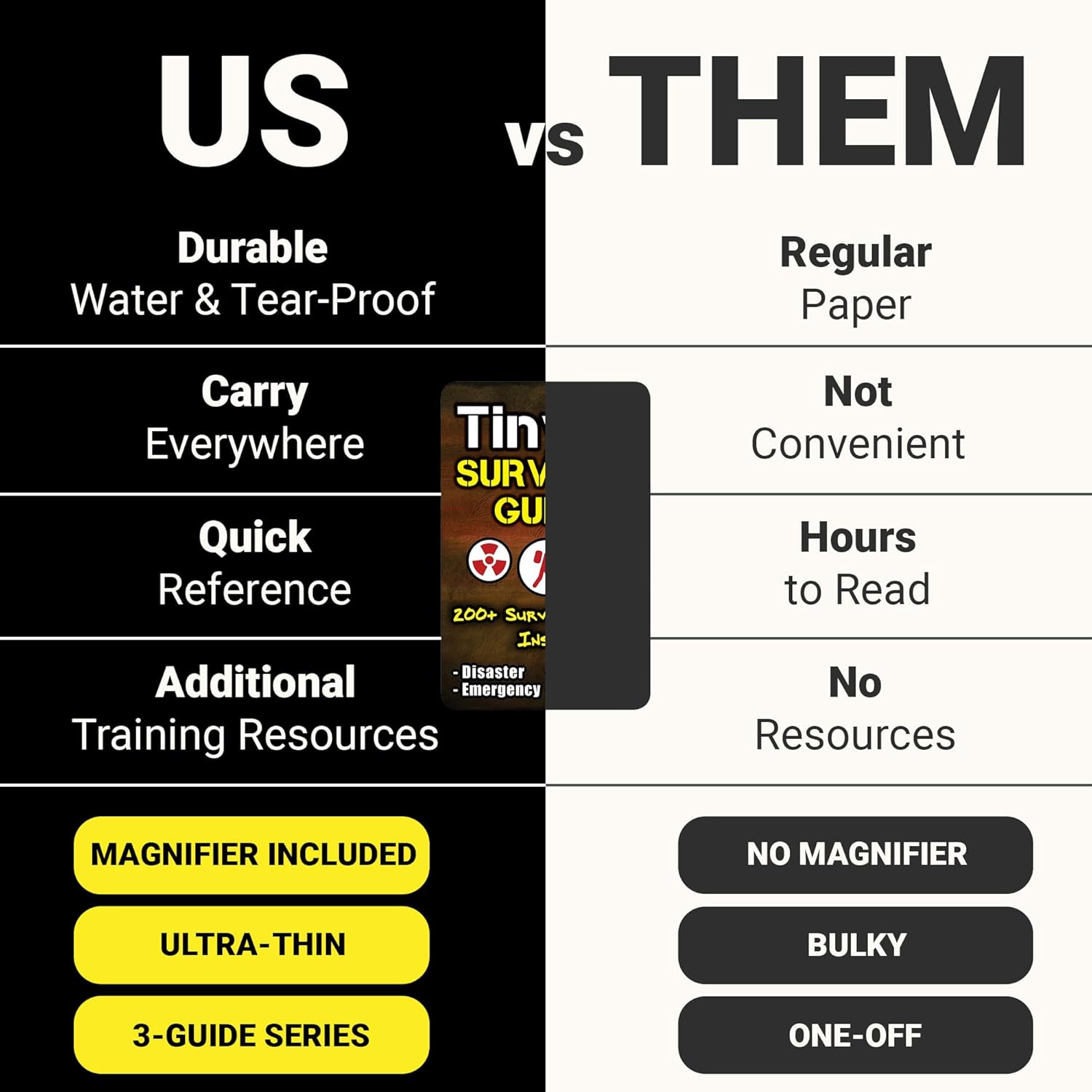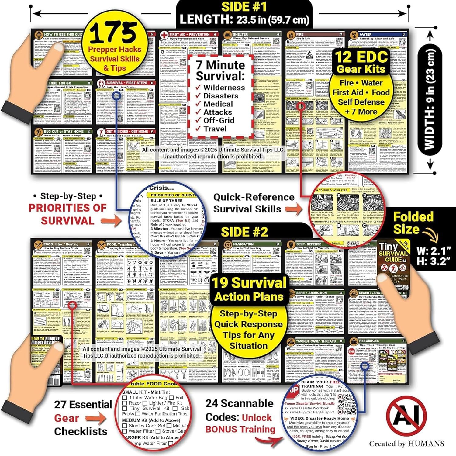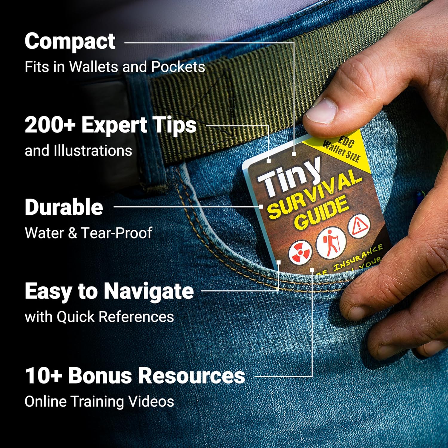 Tiny SURVIVAL GUIDE 2.0 is the World’s Smallest and MOST Complete Pocket: Emergency – Travel – First Aid – Camping – Hunting – Adventure – Survival Guide Ever Developed – Because It’s Designed to Be BOTH: