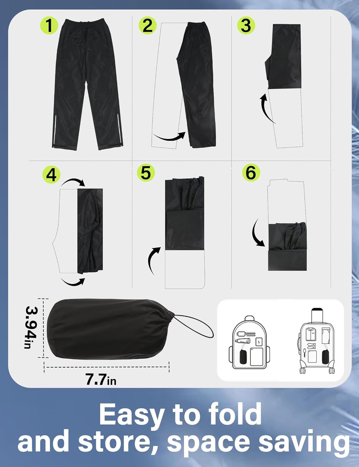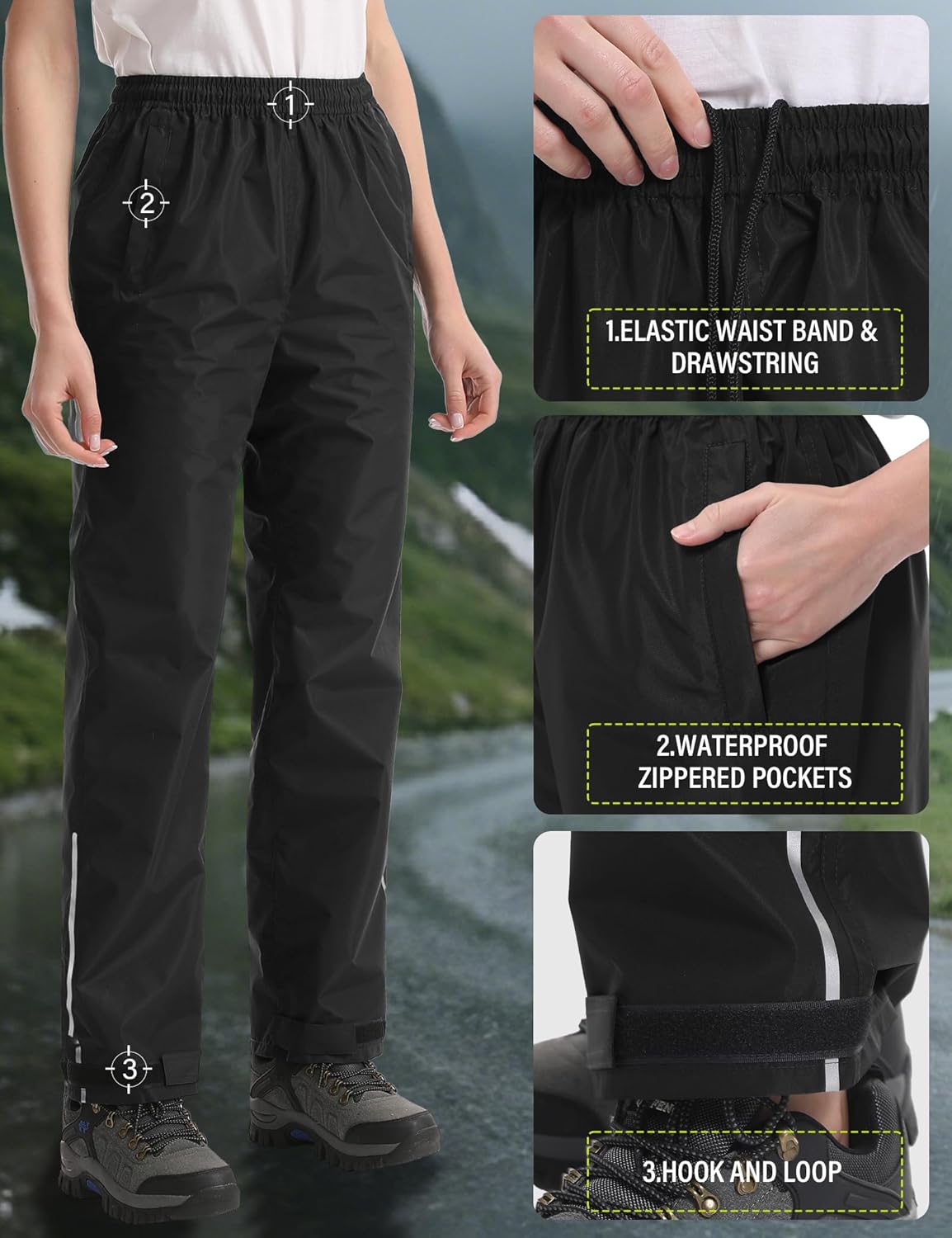 Customers find these rain pants provide excellent waterproof protection, keeping them dry and repelling rain, with one customer noting they work well in long wet grasses. The pants are lightweight, functional, and offer good value for money, with one customer mentioning they’re perfect for Alaska cruises. Customers disagree on the sizing, with some reporting they run very small.