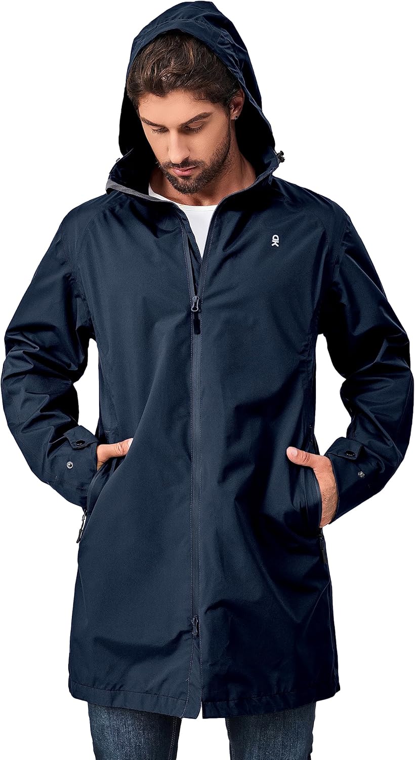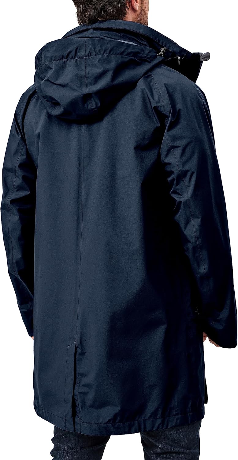 The video showcases the product in use.The video guides you through product setup.The video compares multiple products.The video shows the product being unpacked. Men’s Long Waterproof Rain Jackets Merchant Video