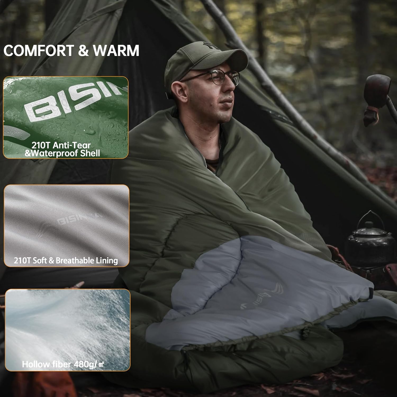 【4 Season sleeping bag】Our comfortable Sleeping bags for adults and kids have a hollow fiber fill that traps heat and keeps you feeling warm and comfortable, with a warm 480grams/ m² hollow cotton filling, temperature range: as low as 23°-50°F, Whether you are camping, hiking, or having sleepovers in the backyard, our sleeping bags will keep you warm and protected.