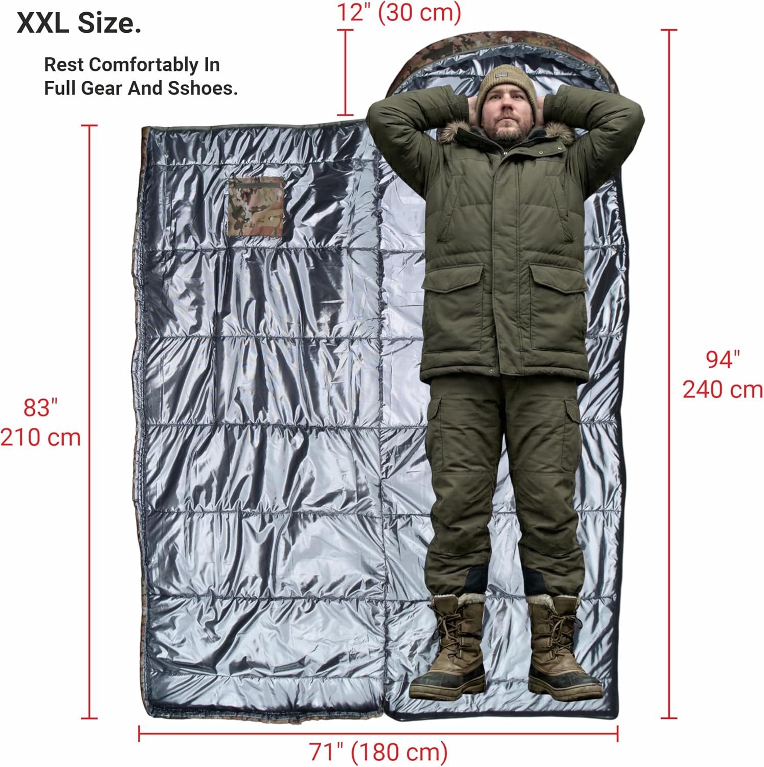 Experience ultimate warmth and reliability with the 0°F Rated Extra Large Military Sleeping Bag for Adults. Designed for extreme cold weather, this oversized sleeping bag keeps you comfortable down to -13°F (-25°C), making it perfect for winter camping, hiking, hunting, and survival adventures. Crafted with high-quality water-resist Oxford fabric and double-layer 400g/m² synthetic insulation, it provides exceptional warmth and durability. The thermal reflective lining retains body heat, ensuring maximum comfort even in freezing conditions. This military-style camouflage sleeping bag is big & tall, with a generous size of 94×35 in, giving ample space for full gear or extra layering. Its heavy-duty construction has been tested in harsh cold environments, proving its reliability and strength. Proudly made in Ukraine, each sleeping bag is manufactured to the highest standards and rigorously tested in sub-zero conditions to guarantee performance when it matters most. Whether you’re tackling extreme outdoor conditions or need a dependable sleeping solution for tactical or survival use, this sleeping bag delivers durability, warmth, and comfort in every adventure.