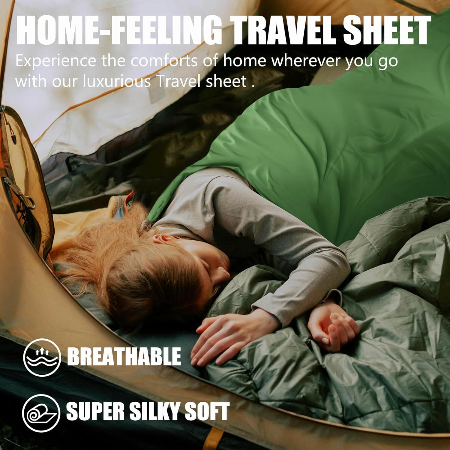Versatile Use: Our sleeping bag liner is the perfect addition to your outdoor sleep system or serves as a warm-weather ultralight sleeping bag. It’s also the ideal companion for various scenarios. Whether you’re staying in a hostel, enduring long bus rides, or embarking on plane journeys, this liner adds extra warmth and acts as a protective barrier.
