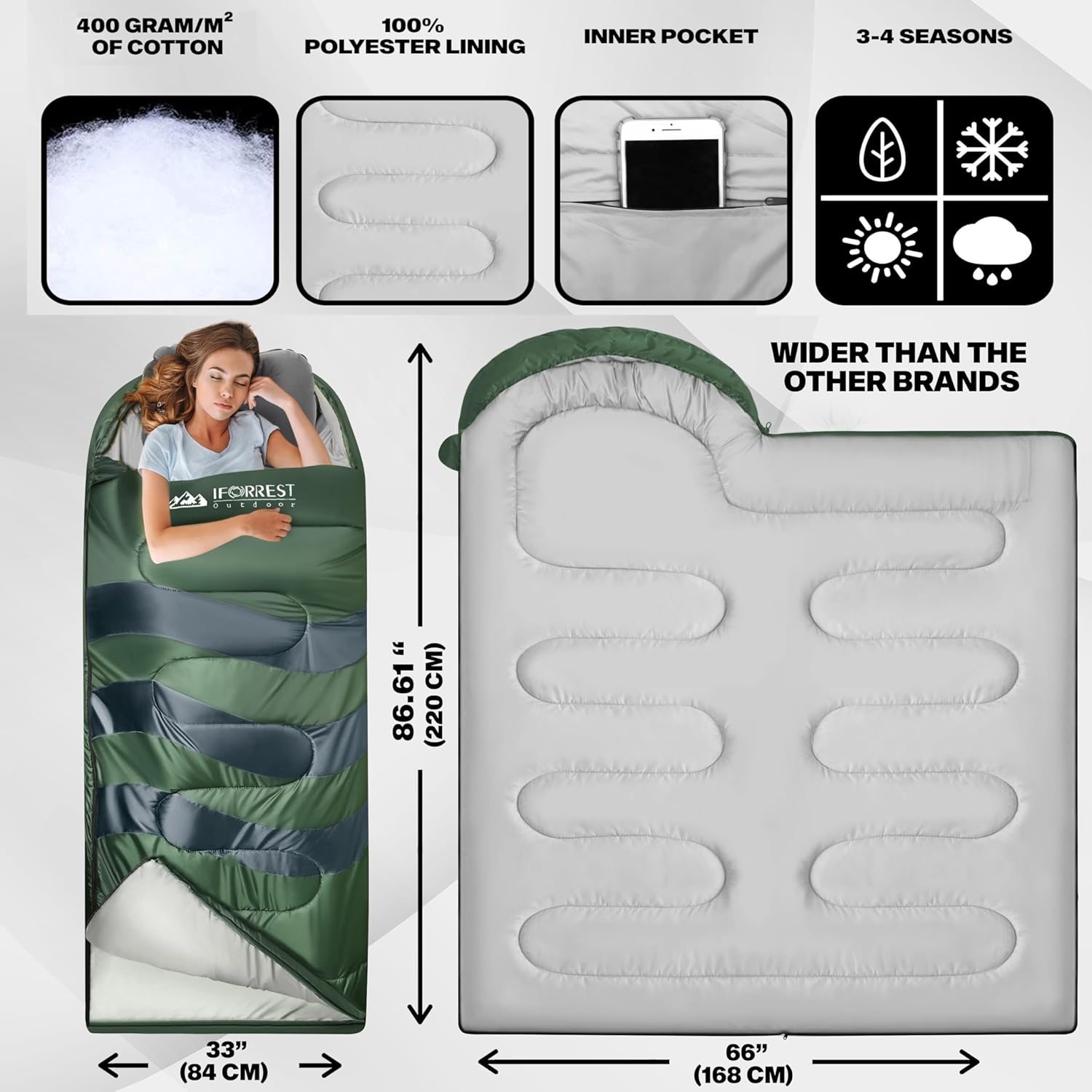 100% SATISFACTION GUARANTEED: Enjoy the comfort and reliability of the IFORREST sleeping bag, backed by our hassle-free return or 2-day replacement policy for your peace of mind.
