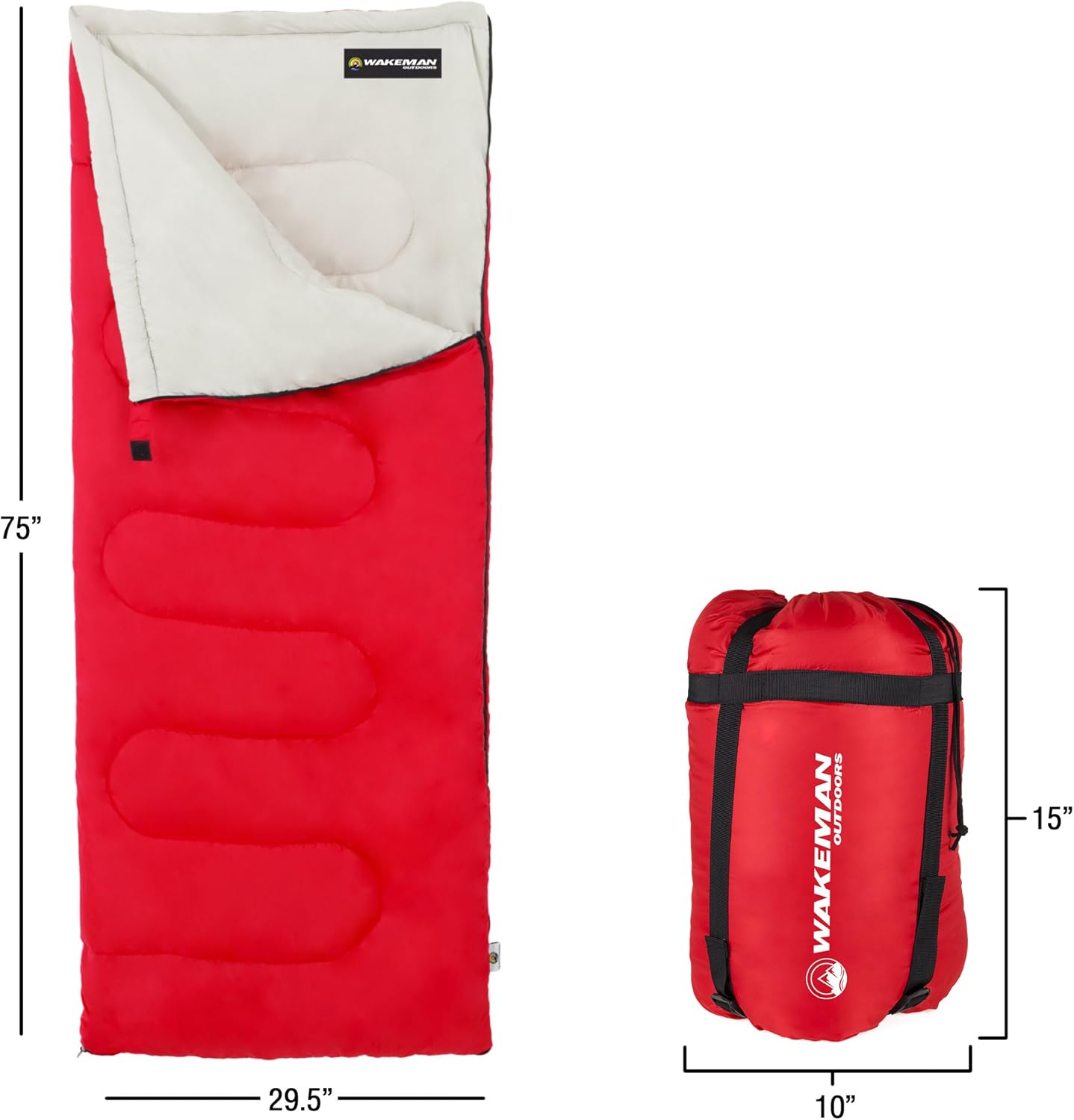 FULL ADULT SIZE- There?s nothing worse than feeling constricted in a small sleeping bag when you?re asleep. This bag measures 75? x 32? which will easily fit anyone up to 5?11? and provides plenty of room and comfort.