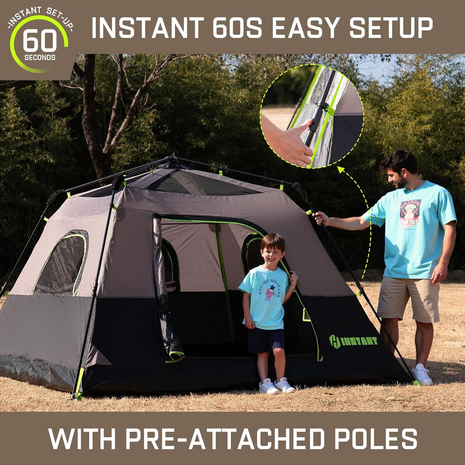 【Excellent Views & Ventilation】:The instant tents for camping are equipped with four large mesh windows, which can create convection within the tent and quickly carry away the hot air inside the tent.And the ceiling is designed with a mesh screen, which not only allows the rising heat to flow out quickly but also provides an excellent view. With the rainfly off, the tent can even be used as a stargazing tent at night.Add extra fun to your camping experience with family or friends!