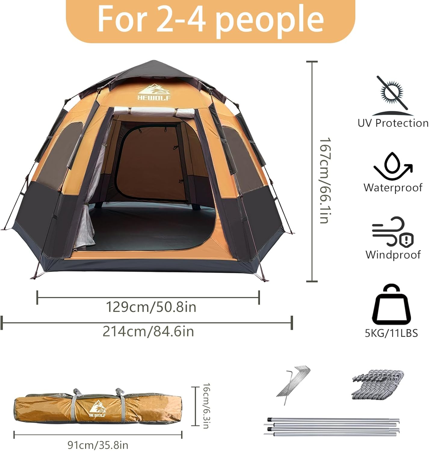 Multi-Season Use: Designed for all-season performance, this camping tent is your ultimate companion for camping, hiking, and backpacking. With a spacious interior that comfortably accommodates 2-4 adults, it’s perfect for family camping trips, weekend getaways, or solo expeditions. Whether you’re braving winter snow or summer rain, its durable construction ensures reliable shelter in any weather