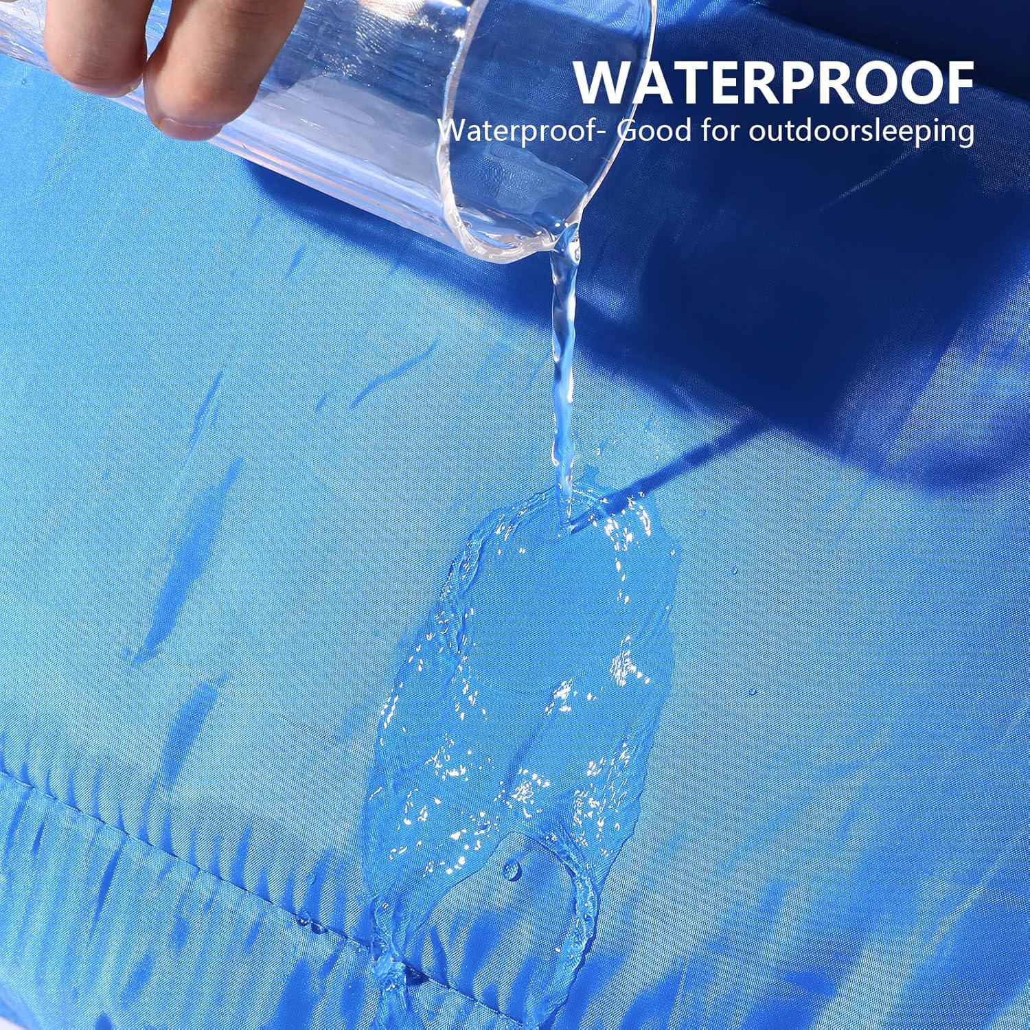 Ample Space:The blue lightweight sleeping bag is lightweight and compact, weighing 2 pounds. Dimensions: (74.86+11.81) in x 29.59in, compressed size: 9.8-17.7 inches, taking up less space. It is wipeable, and each sleeping bag comes with a compression bag for easy storage and portability