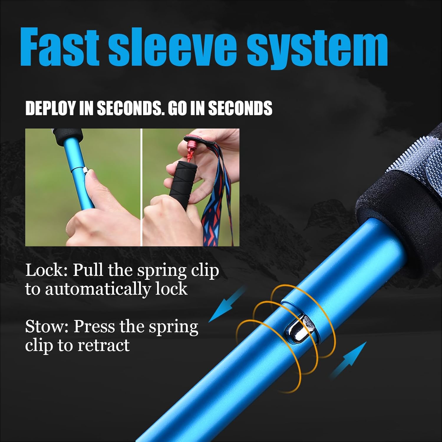 Rapid-Deploy Design: From compact carry to full-length readiness in seconds. This collapsible hiking stick features a swift, secure locking system for instant use when time is critical