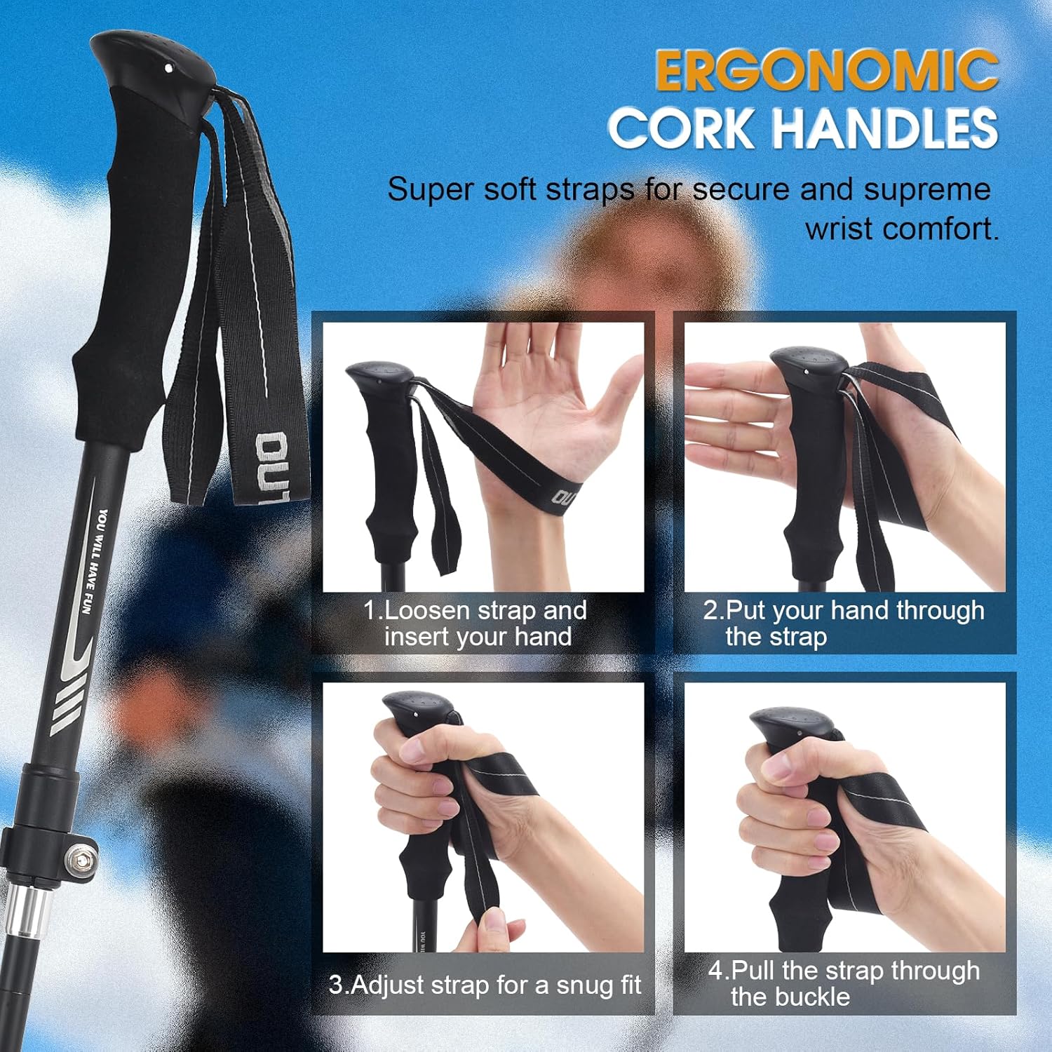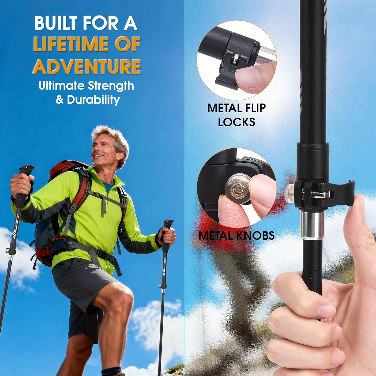 DURABLE CONSTRUCTION: Made from premium 7075 aluminum alloy, these trekking poles offer exceptional strength while maintaining a lightweight design