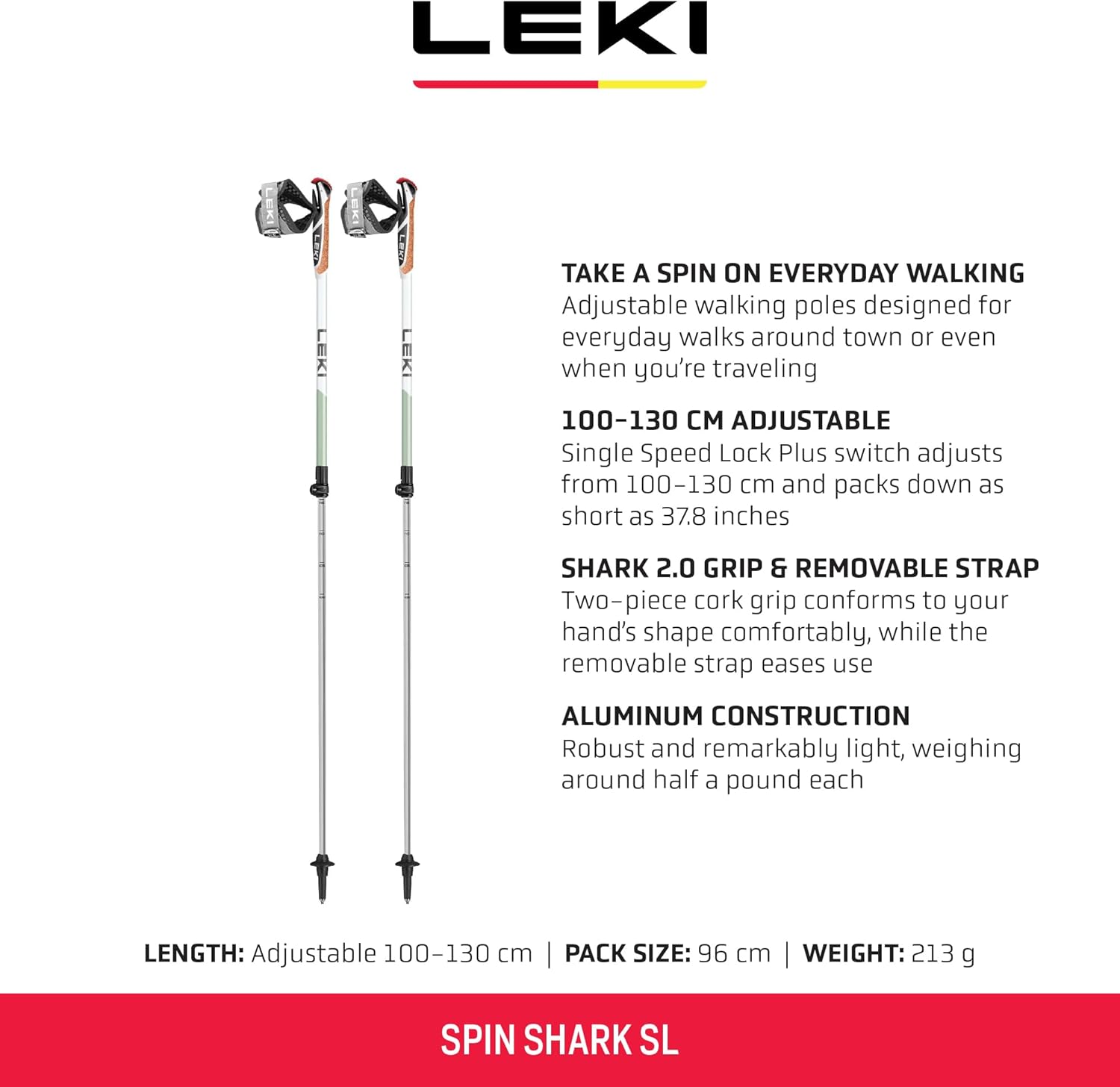 The Leki Spin Shark SL poles are a flexible and lightweight option for Nordic walking equipment.