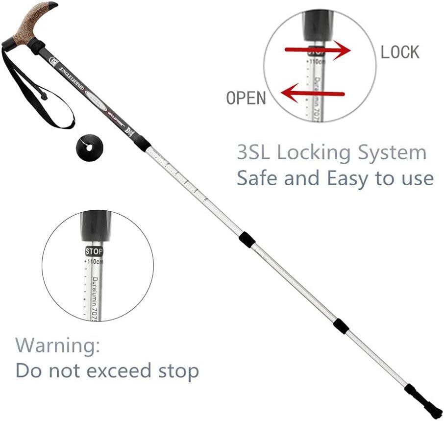 【Comfortable Cork/EVA Grip, Sturdy Cane】: This keeps your hands dry,resists moisture from sweaty hands, decreases vibration and best conforms to the shape of your hands. If you sweat a lot and will be hiking in hot weather, go with cork grips.