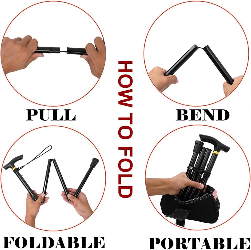 Ultralight & Portable Trekking Poles: Foldable into 4 compact sections (just 10 inches when collapsed), these trekking poles weigh a mere 0.5lbs yet support up to 198lbs. Perfect for storage and travel – simply flip to deploy instantly, making them ideal for hikers, seniors, and rehabilitation users.