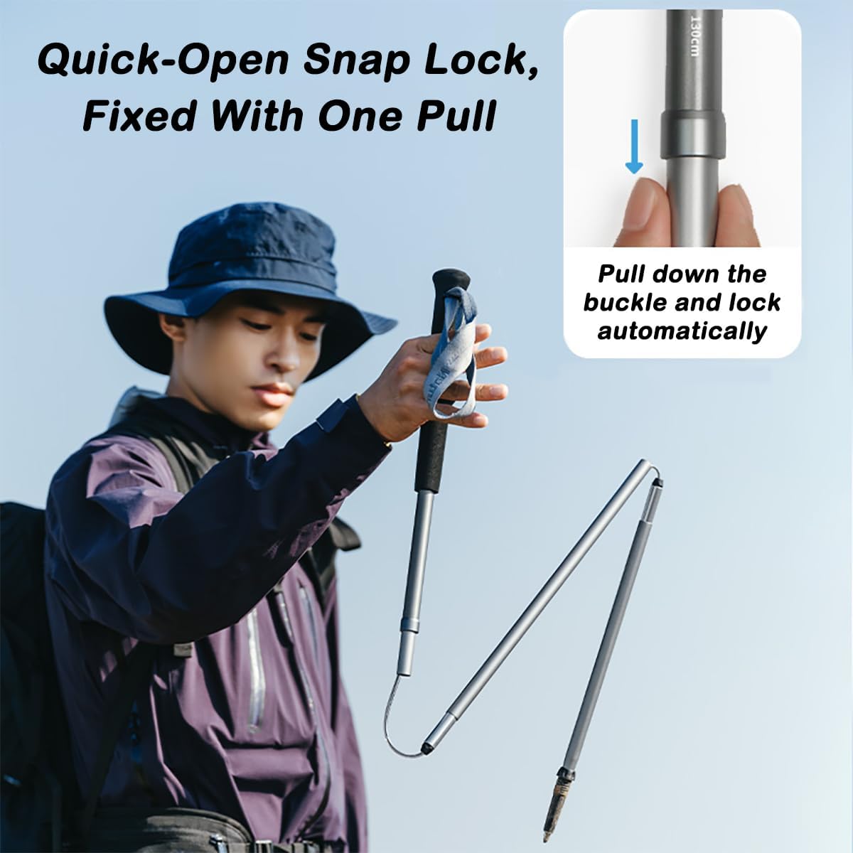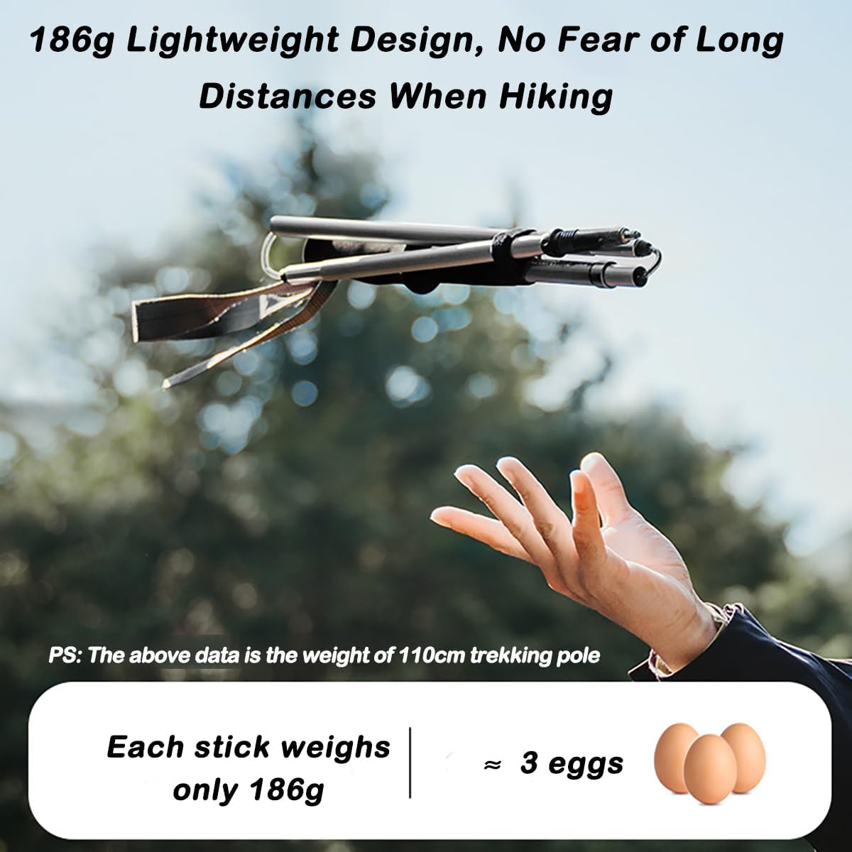 Tailored Sizing for Every Hiker:Available in three perfectly calibrated sizes. The 43.31 – inch (110cm) model, weighing just 6.56 ounces (186g), is ideal for those 5’1″ – 5’4″ (155 – 164cm) tall; the 47.24 – inch (120cm) model, at 7.00 ounces (198g), suits hikers 5’5″ – 5’9″ (165 – 176cm) in height; and the 51.18 – inch (130cm) model, weighing 7.34 ounces (208g), is designed for individuals 5’10” – 6’1″ (177 – 185cm) tall. Find your perfect fit for optimal support and comfort.