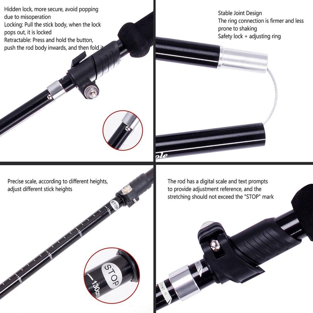 【Built to Last】Grab our reliable trekking poles for hiking collapsible before you hit the trail! Each pole is built with aero-grade aluminum alloy and engineered to details! Both women and men can get the best in support and stability. They can also be used as nordic walking poles for women.