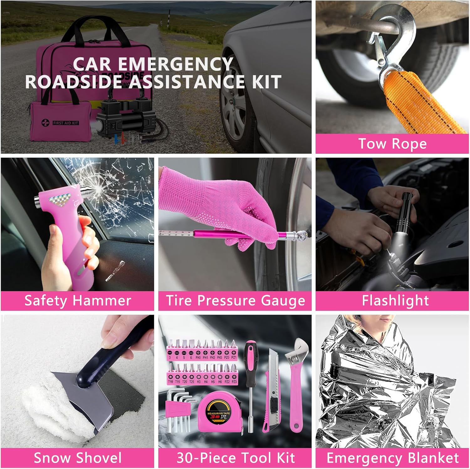 COMPREHENSIVE ROADSIDE ASSISTANCE KIT: Our emergency car kit contains a self-contained, waterproof 150-piece emergency kit. It can provide the safest and most comprehensive protection in emergencies