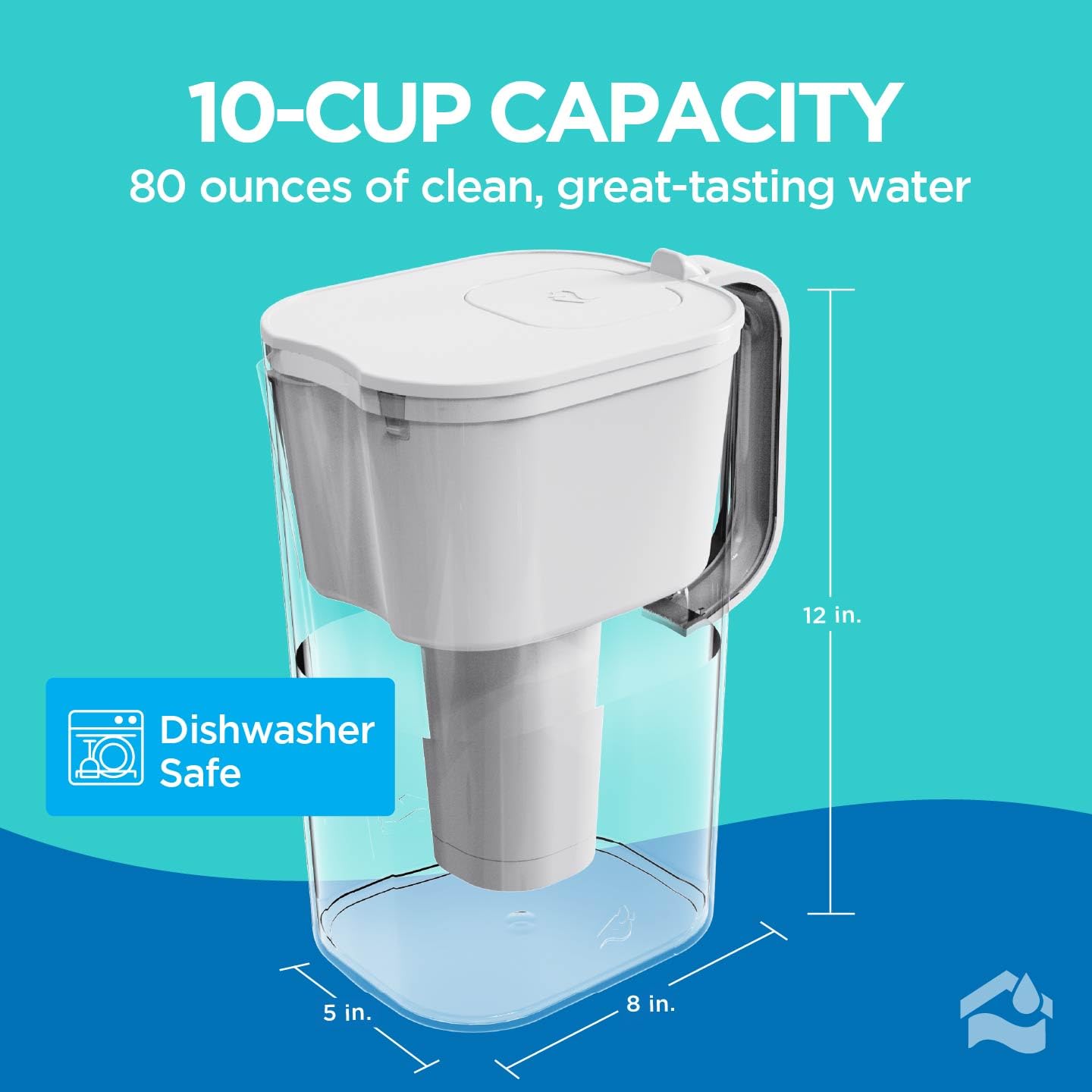 MAXIMIZED CAPACITY: This 10-cup / 2.4 L / 80 fl. oz. water filter pitcher provides plenty of drinking water for your daily needs.