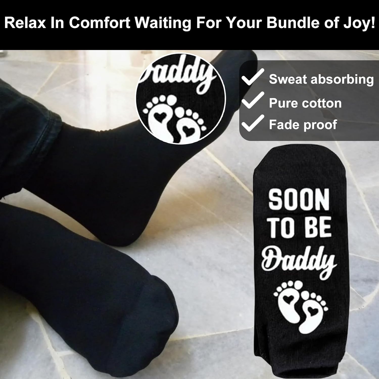 These “SOON TO BE DADDY” socks are crafted from soft, high-quality materials that combine comfort and durability. Designed in a one-size-fits-most style, they provide a snug and cozy fit for nearly everyone. The bold, playful print on the bottom adds a fun touch, perfect for dads-to-be to show off their excitement. Built to last and easy to wear daily, these socks are a stylish and meaningful addition to any expectant father’s wardrobe.