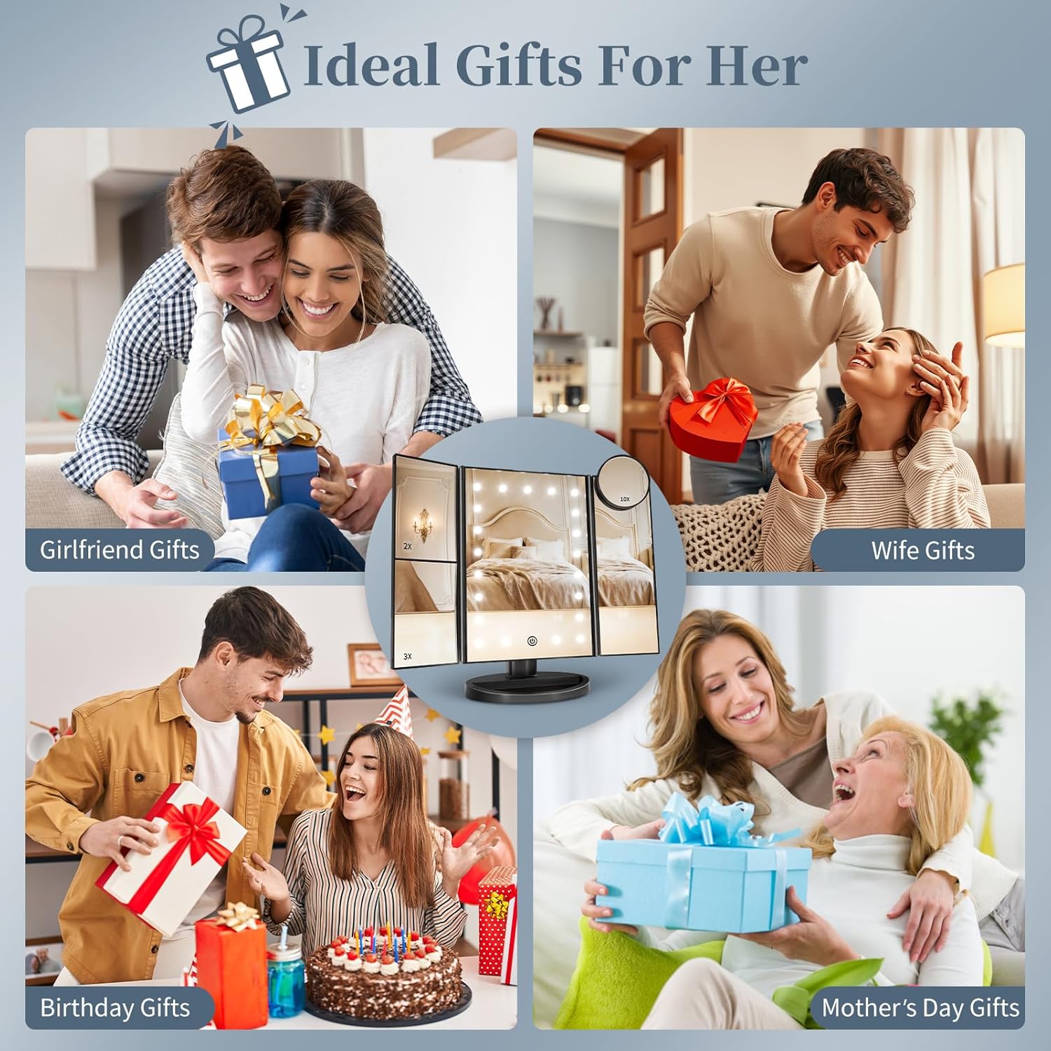 Sleek, Compact Design: With a modern finish, stable base, and foldable trifold design, this vanity mirror looks elegant on any vanity while staying compact and easy to store.Ideal for Valentine’s Day, Mother’s Day, birthdays, anniversaries, Christmas, or just because. Functional yet beautiful, HUONUL makeup mirror vanity with lights is a thoughtful gift for makeup lovers, moms, wives, girlfriends, or anyone ready to upgrade from a cheap, flimsy mirror.