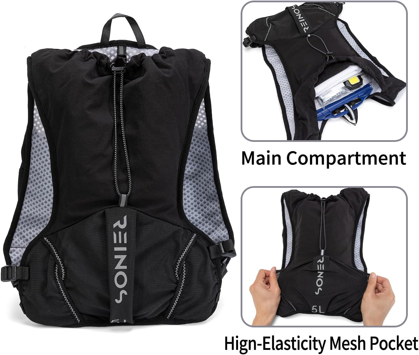 Stay Hydrated Anytime, Anywhere: Equipped with a 1.5L hydration bladder, this vest makes it easy to stay hydrated on the go. Additional front pockets are perfectly sized for 700ml soft flasks, giving you versatile hydration options for any outdoor adventure.