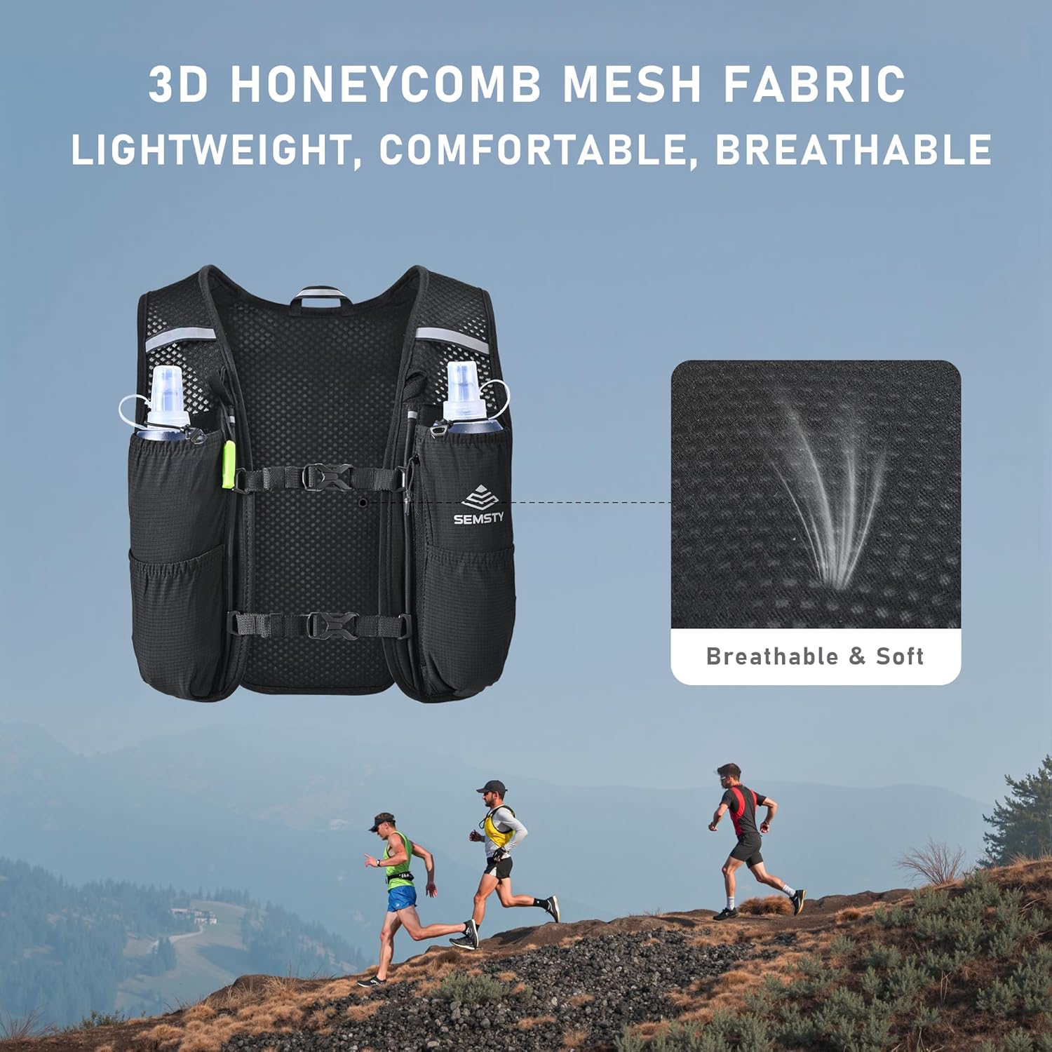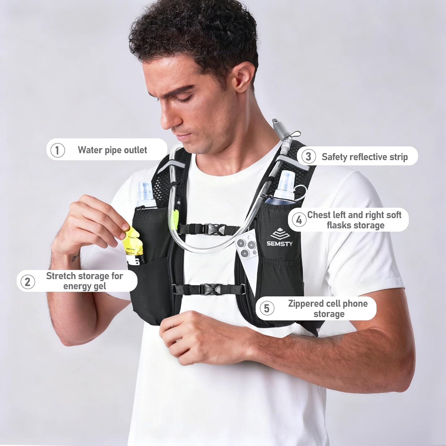 Breathable And Lightweight: The Semsty running backpack is design with moisture-wicking, sweat-resistant fabric, maximizing airflow to keep you cool and comfortable during every running session. Enjoy the lightweight hiking vest, breathable chafe-free experience that feels like a second skin, providing unmatched comfort for your running gear adventures. This lightweight running backpack weighs only 195 grams / 0.43 lbs. The size of the hydration pack is 42cm*21.5cm/16.5 in*8.5 in.