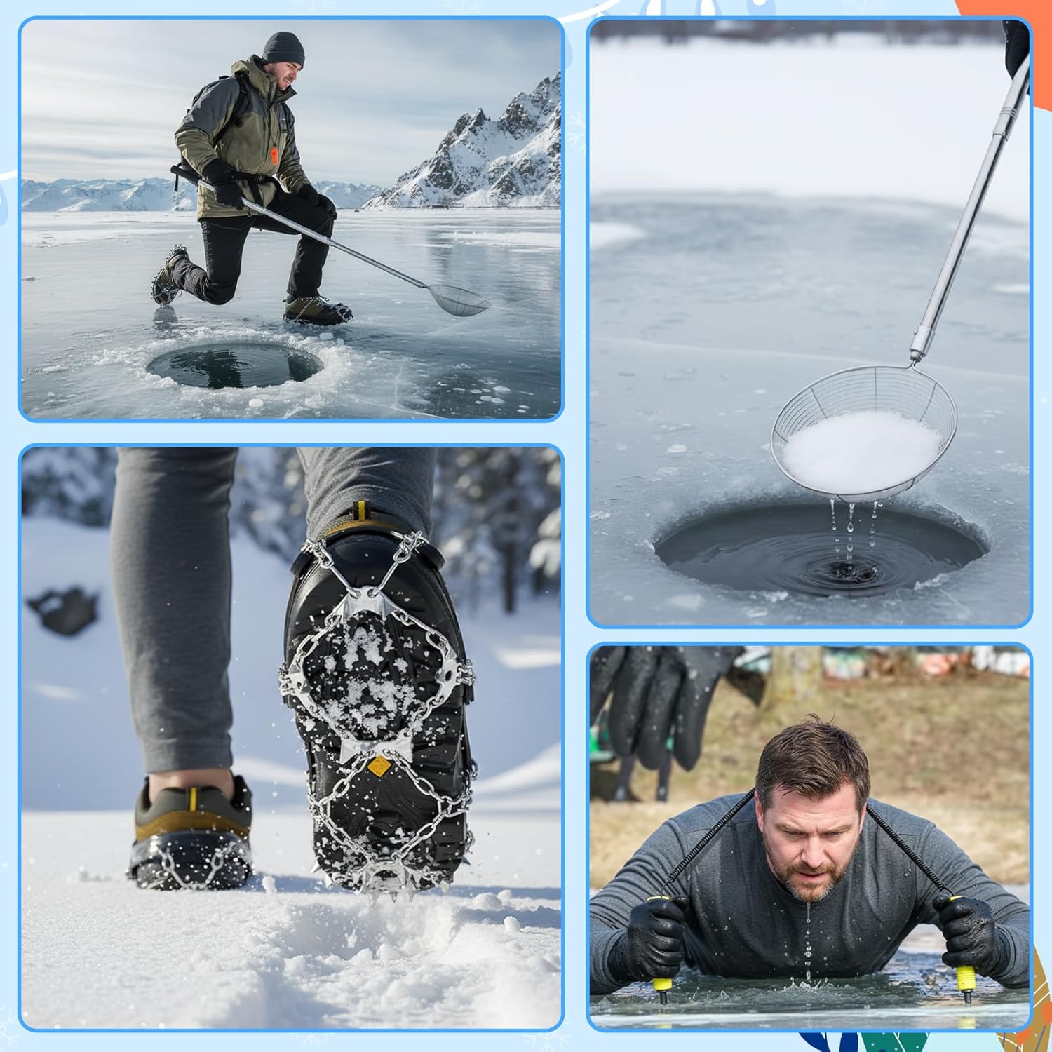 🥾 4 Pcs Ice Fishing Gear Kit, Include Retractable Ice Safety Picks and Fishing Scoop Skimmer, Crampons Cleats Snow Grips for Shoes Emergency Whistle for Hiking Climbing — Review, Key Features & Current Price