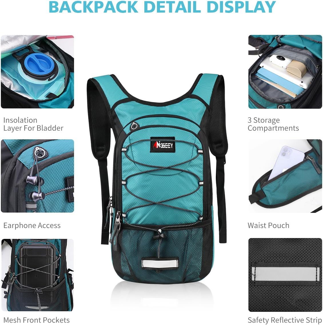 ♻️【MULTIPLE POCKETS】Includes 3 storage compartments and plenty of storage space. The multi-pocket design of the hydration backpack allows you to carry most of the items you need. You can put your water bottle, mobile phone, keys and snacks in the front or back pocket of the hydration vest. Niggeey hydration backpack is the perfect tool for outdoor sports, the best hiking backpack for your family, lover, friends, and yourself!