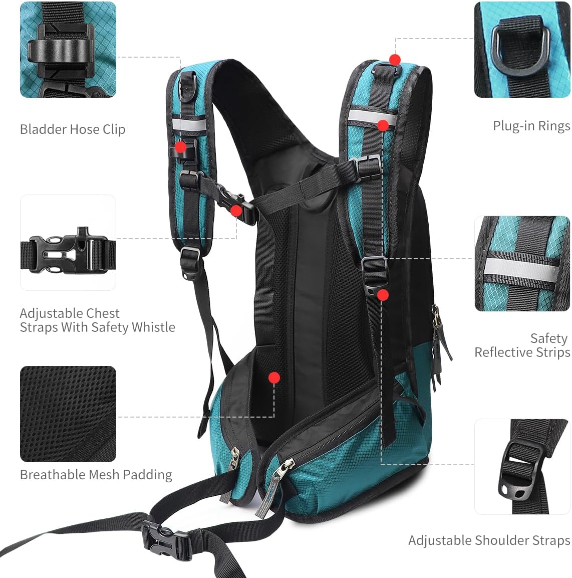 💦【2L WATER BLADDER INCLUDED】Stay hydration with our water backpack’s integrated 2L bladder, BPA FREE, leakproof and durable. Easy drinking directly through the push-lock bite valve, whenever you need without taking your hydration backpack off or stopping your steps, conveniently hydrate during biking, hiking, or any outdoor activity. Large opening design for ice, removable insulated drinking tube with click-in connection.
