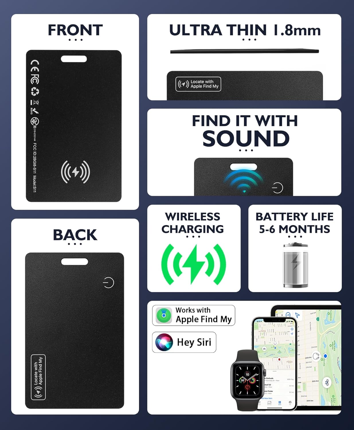 Works with the Apple Find My network, designed for Apple devices, and supports Siri voice control for convenient hands-free operation.