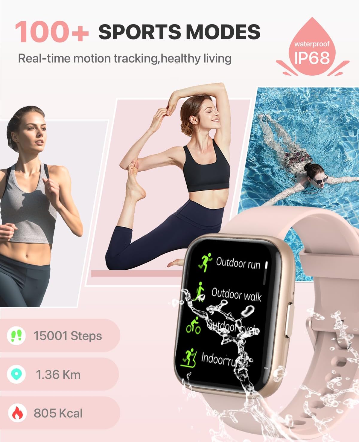 AI VOICE ASSISTANT & IP68 Waterproof— Talk to the AI voice assistant for perfect hands freedom navigation, calls, music and alarms. With an IP68 waterproof,designed for your active lifestyle, the smartwatch is easy andperfect for Daily Waterproofing needs.
