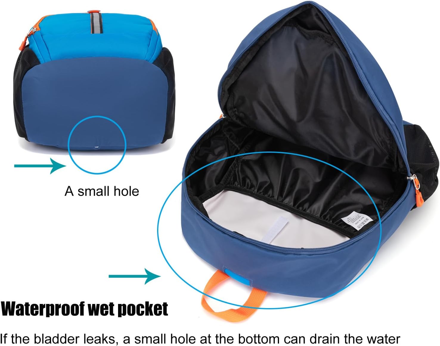 Two sizes fit your kid’s needs. Small size: 15.0 inches x 9.0 inches x 6.0 inches. Capacity: 14L. Fit toddler to pack less for a light hiking trip. Medium size:15.5 inches x 10.0 inches x 6.0 inches. Capacity: 18L. Fit little kids to pack more needs in adventure