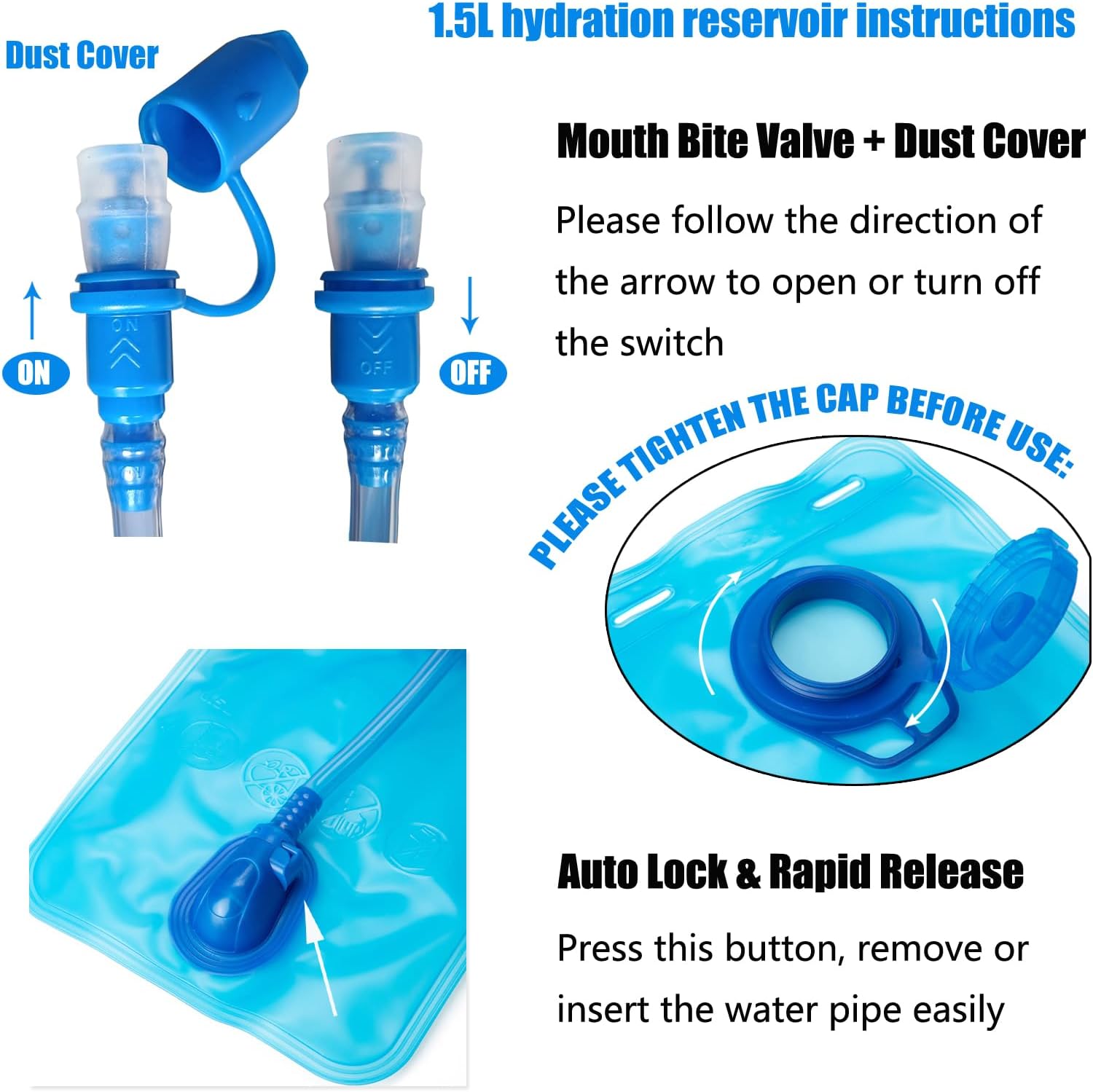 Taste-free hydration bladder, free from BPA and PVC, keeps water tasting fresh all-day