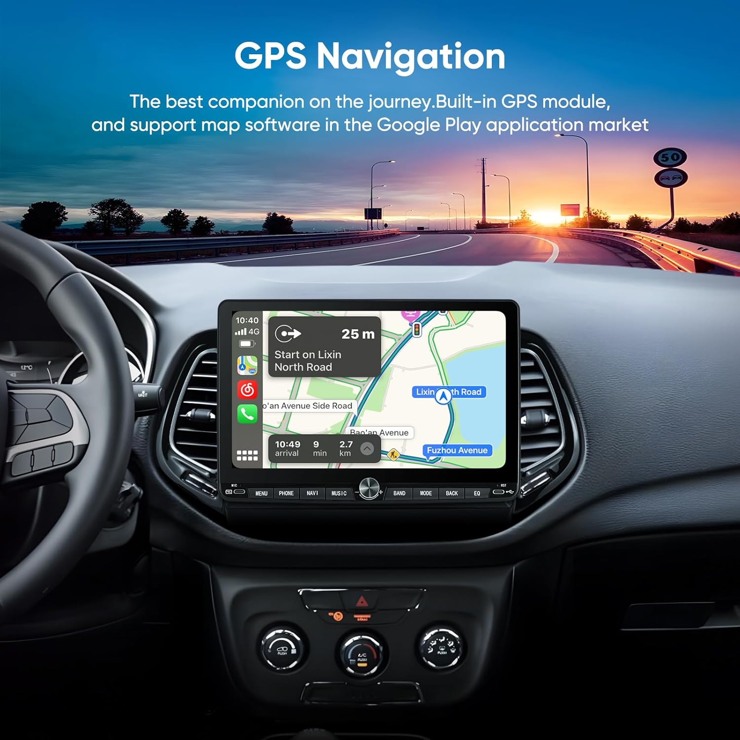 10 Inch 4+64G Upgrade Car Stereo with Knob/Physical Buttons and Type-C Charger Port Built in Carplay Android Auto TouchScreen Radio Applicable Car Models and Years: For Jeep Compass 2017 2018 2019 2020.