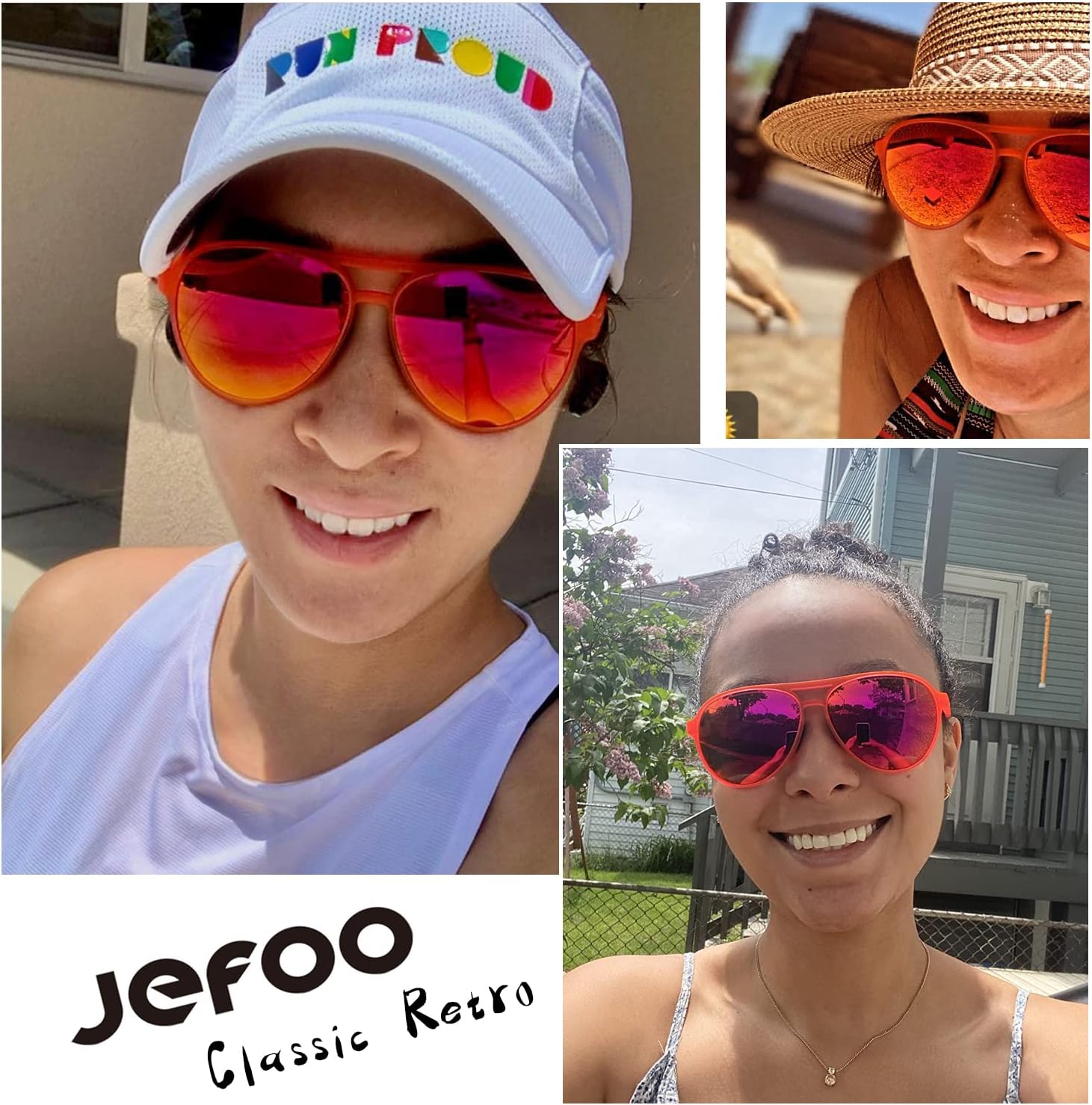 PERFECT DECORATION : Jefoo classic trendy sunglasses are the perfect choice for casual and outdoor occasions. Weight only 18.3g. The lightweight design effectively reduces slippage and is ideal for running, shopping, hiking, driving, cycling, traveling, sailing, golfing, climbing and for walking races or other outdoor activities. Also suitable as a vintage fashion accessory and giving you a great personality look.