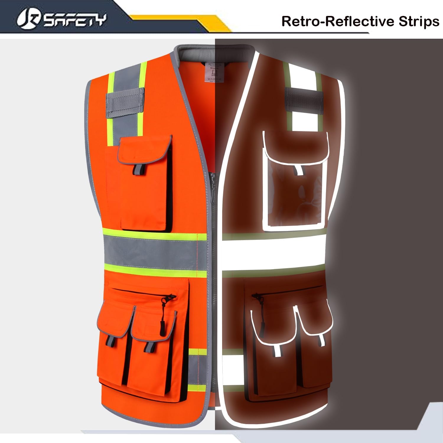 SAFETY FEATURES: Four 2-inches wide high reflective strips outlined by fluorescent color strips to maximize visibility. They cover the shoulders, chest, and back. The retroreflective tapes reflect 360 degrees light waves while you are working in daylight or low-light environments. The vest will keep you visible to others.