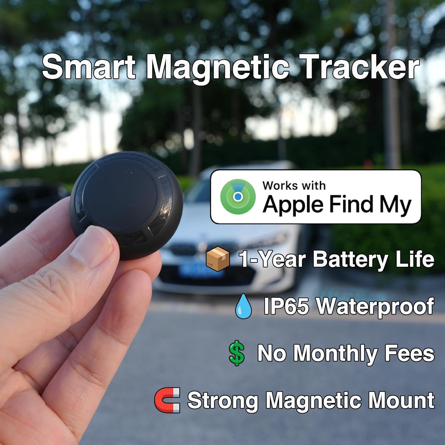 π No Monthly Fee, No Subscription Required – Works exclusively with Apple Find My network. Unlike GPS trackers that charge $10-20/month, this tracker provides lifetime tracking at zero ongoing cost. Perfect alternative to AirTag for vehicle location.