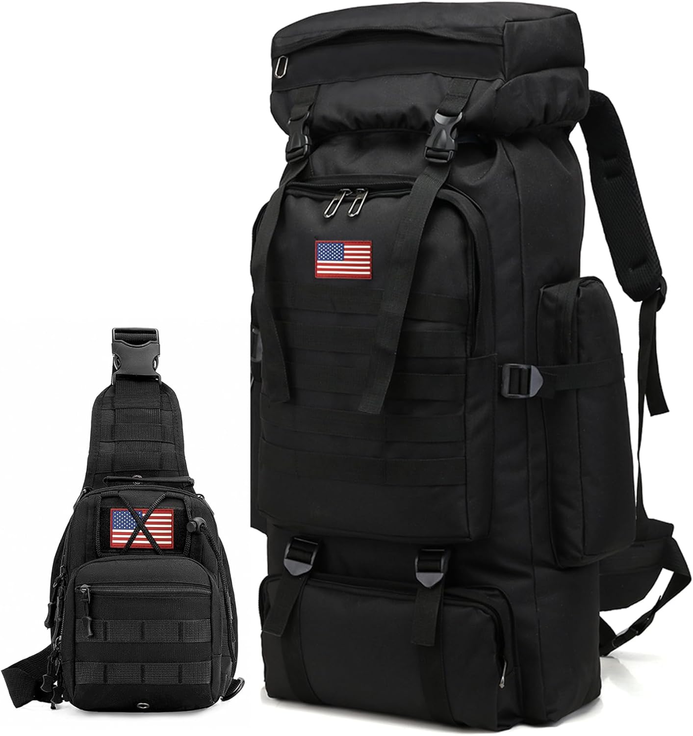 【Durable Upgraded Material】: This backpack is made of 900D Oxford cloth, which is waterproof, tear resistant, and scratch resistant. It is constantly improving to enhance durability and can withstand hiking, climbing, and camping. We also come with a 8L tactical sling bag that can store your compass, sunscreen, or energy bar. Reliable craftsmanship backed by 1-year warranty on all stitching , buckles and zippers.