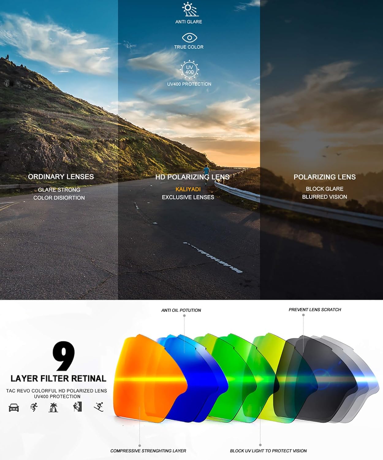 Ready for Outdoors: Experience versatility at its best with KALIYADI sunglasses for men polarized, designed to cater to all athletic endeavors. Whether you are running, cycling, fishing, hiking or driving, these fishing sunglasses for men provide the ultimate in protection and style. Engineered with durable materials and offering complete UV400 protection, they’re your ideal companion for any sport, any day