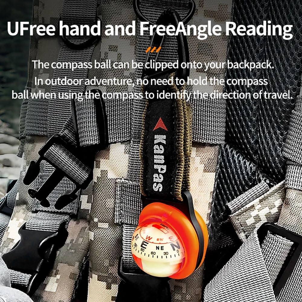 When you remove the compass ball from the bracket, you can use the standard bag hanging belt to hang it on the bag to identify the direction when exploring outdoors.