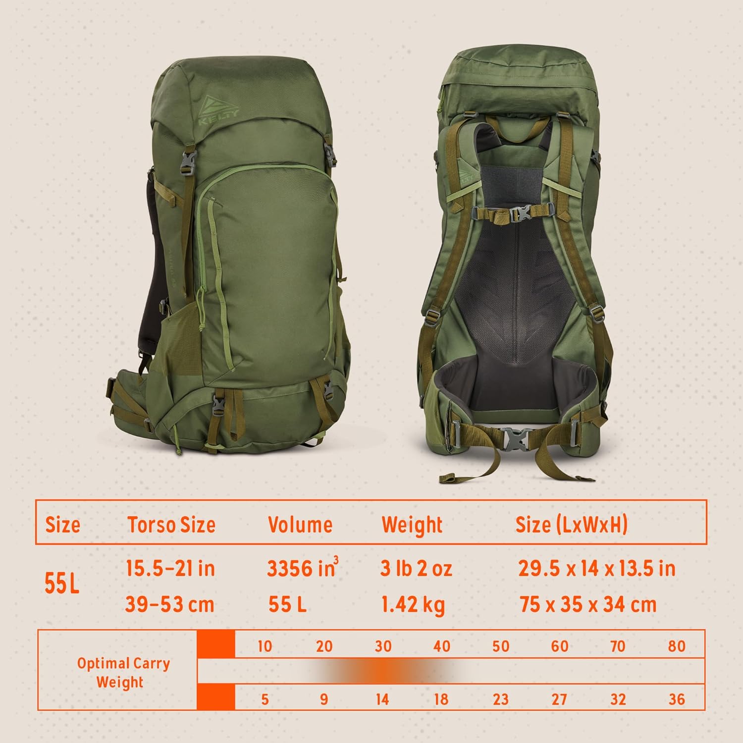 NITTY GRITTY (55L Pack) Torso Length: 15.5-21in, Weight: 3lb 2oz, Dims: 30x13x13in, Optimal Carry Weight Range: 20-40lbs, Upgraded harness package = more comfort