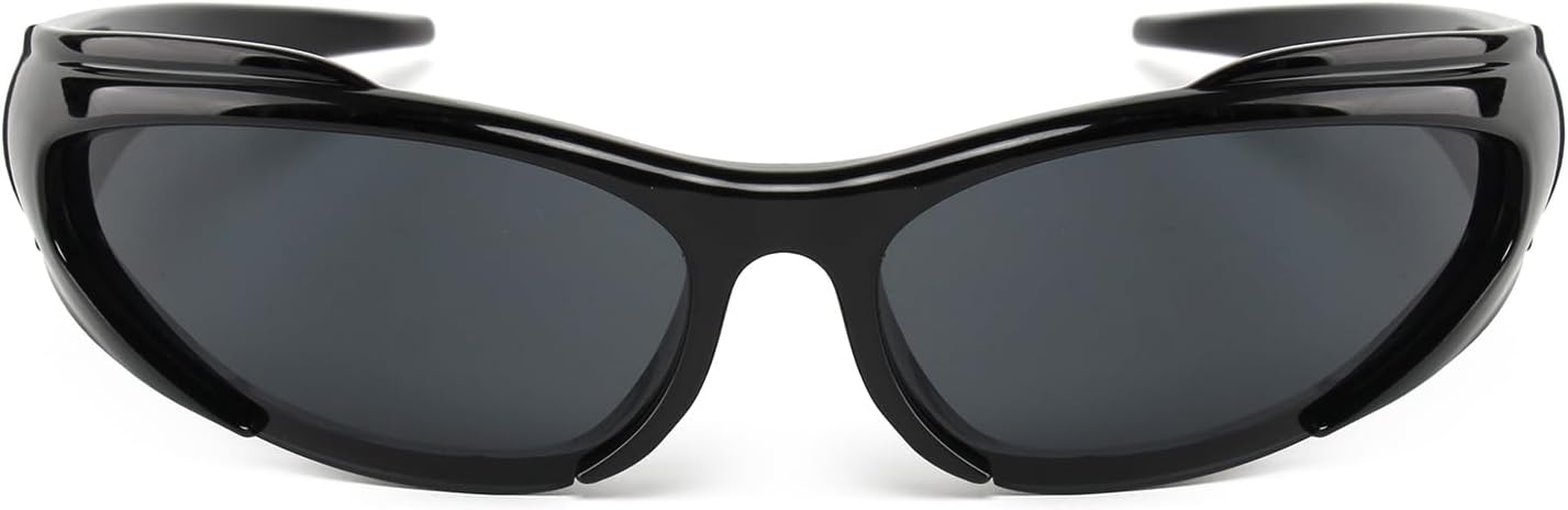 【HIGH QUALITY MATERIAL】These y2k sunglasses are made of high-quality skin-friendly material, light weight, the flexible wrapping frame can perfectly fit the contour of the face, you can wear it for long time without fatigue