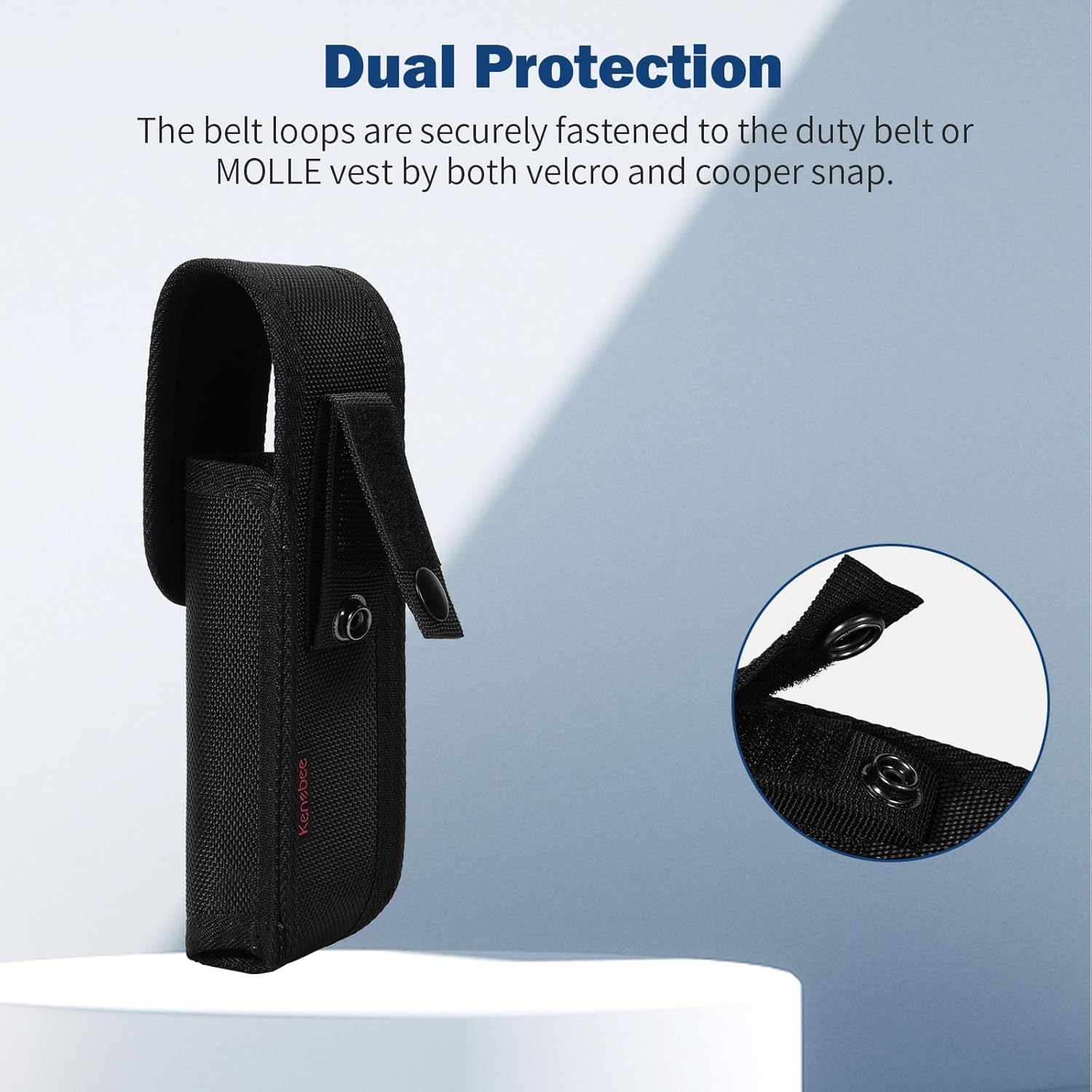 TOP QUALITY: KENOBEE High-quality pepper spray holder is crafted from all-weather nylon for durability with soft padded lining fabric, it will protect your pepper spray from scratches and bumps. This holder boasts excellent build and stitch quality Lightweight yet sturdy, it offers a convenient way to keep your canisters within easy reach.