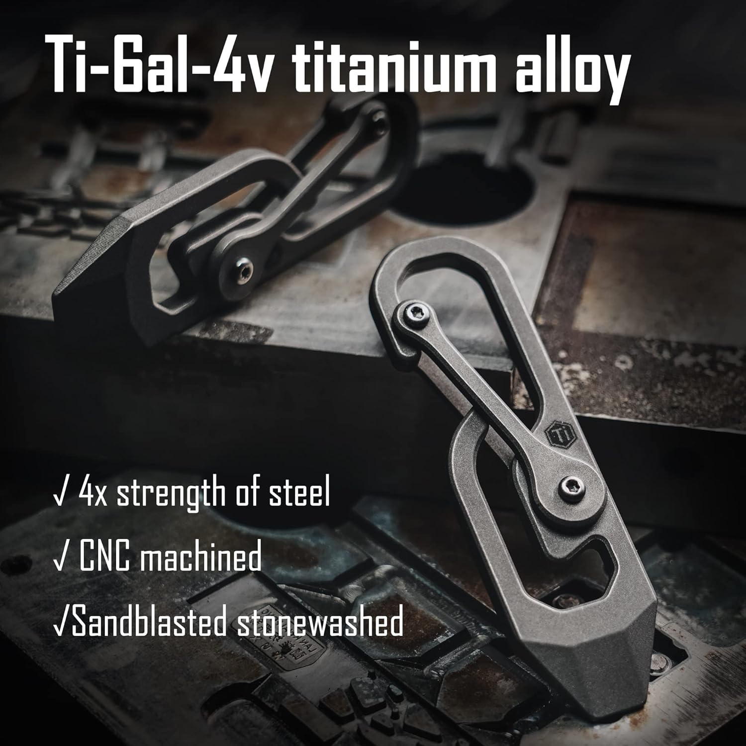【QUALITY & STURDY】 CNC machined from full titanium alloy, non corrosive & anti-rust; Superior craftsmanship with sandblasted and stonewashed process made this functional carabiner clip one of a kind