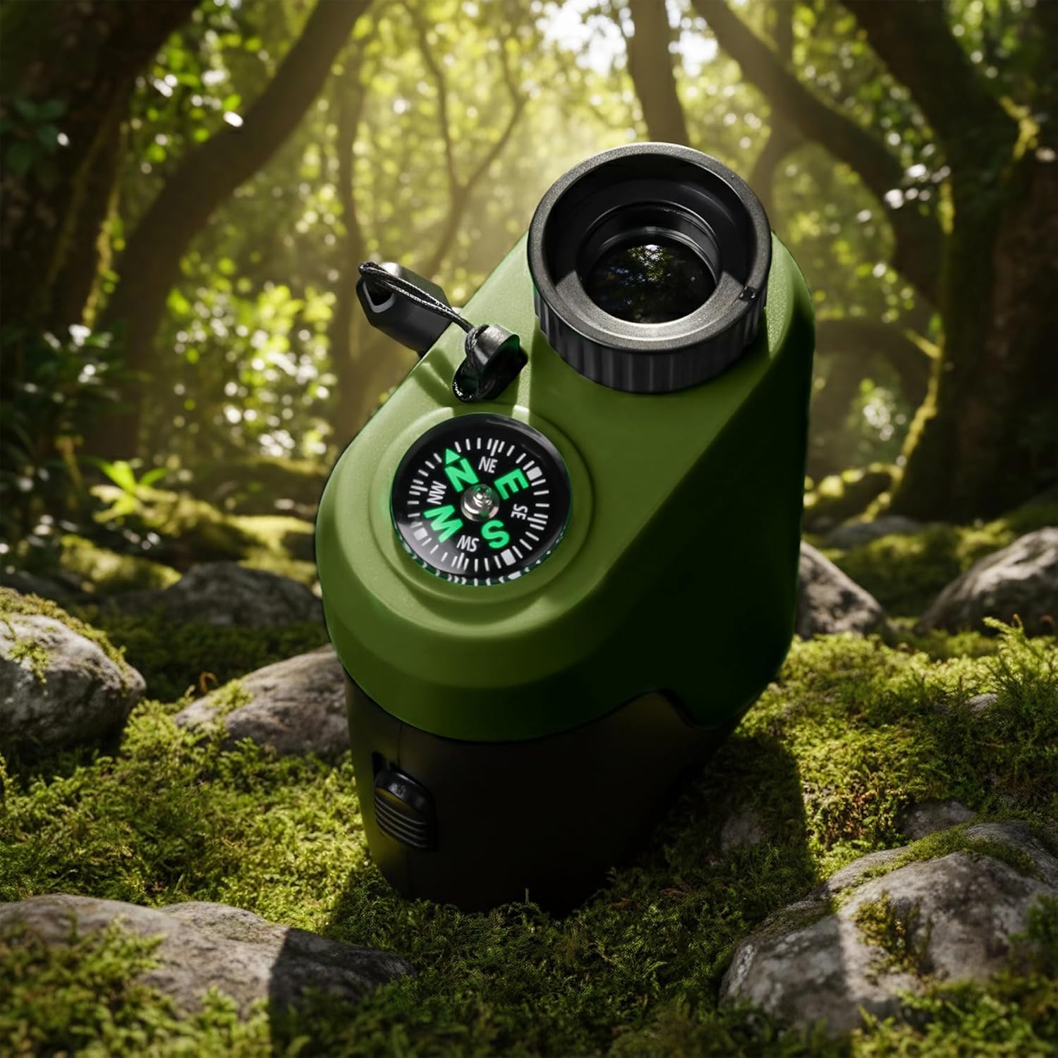 The 4-in-1 outdoor recreation product including Compass, LED Signal Light, Telescope, Infrared rays.