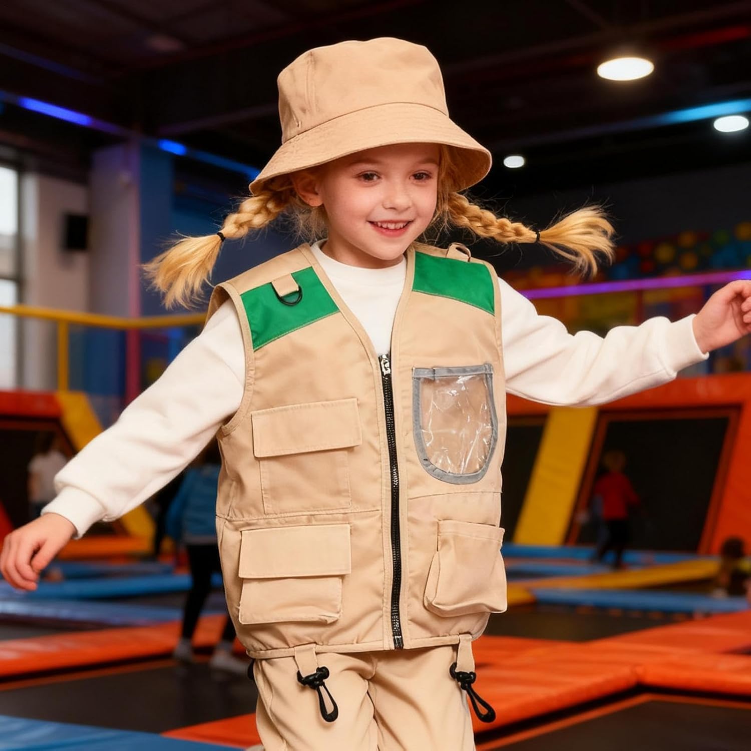 Featuring multiple storage pockets and load-bearing hooks, this explorer costume for kids delivers enhanced convenience for young explorers participating in outdoor hikes by keeping their necessary items organized and their hands unoccupied