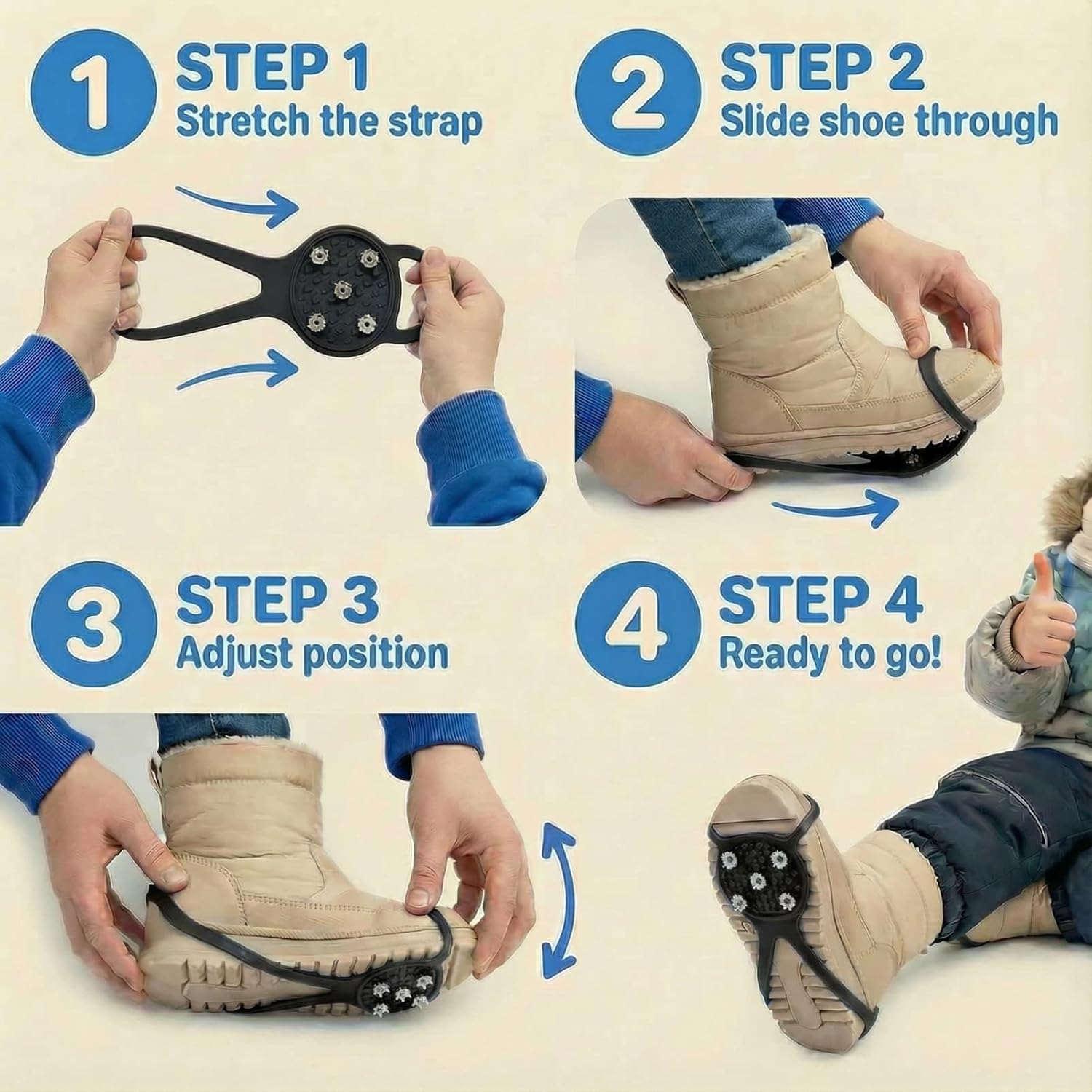 【🎁 Ideal for Winter Fun & The Perfect Gift】Perfect for all your child’s winter adventures, from the walk to playground fun to family hiking on frosty trails. These crampons make a practical and thoughtful gift for parents who prioritize their child’s safety, ensuring peace of mind during outdoor fun and daily routines in icy conditions, making winter safer and more enjoyable.
