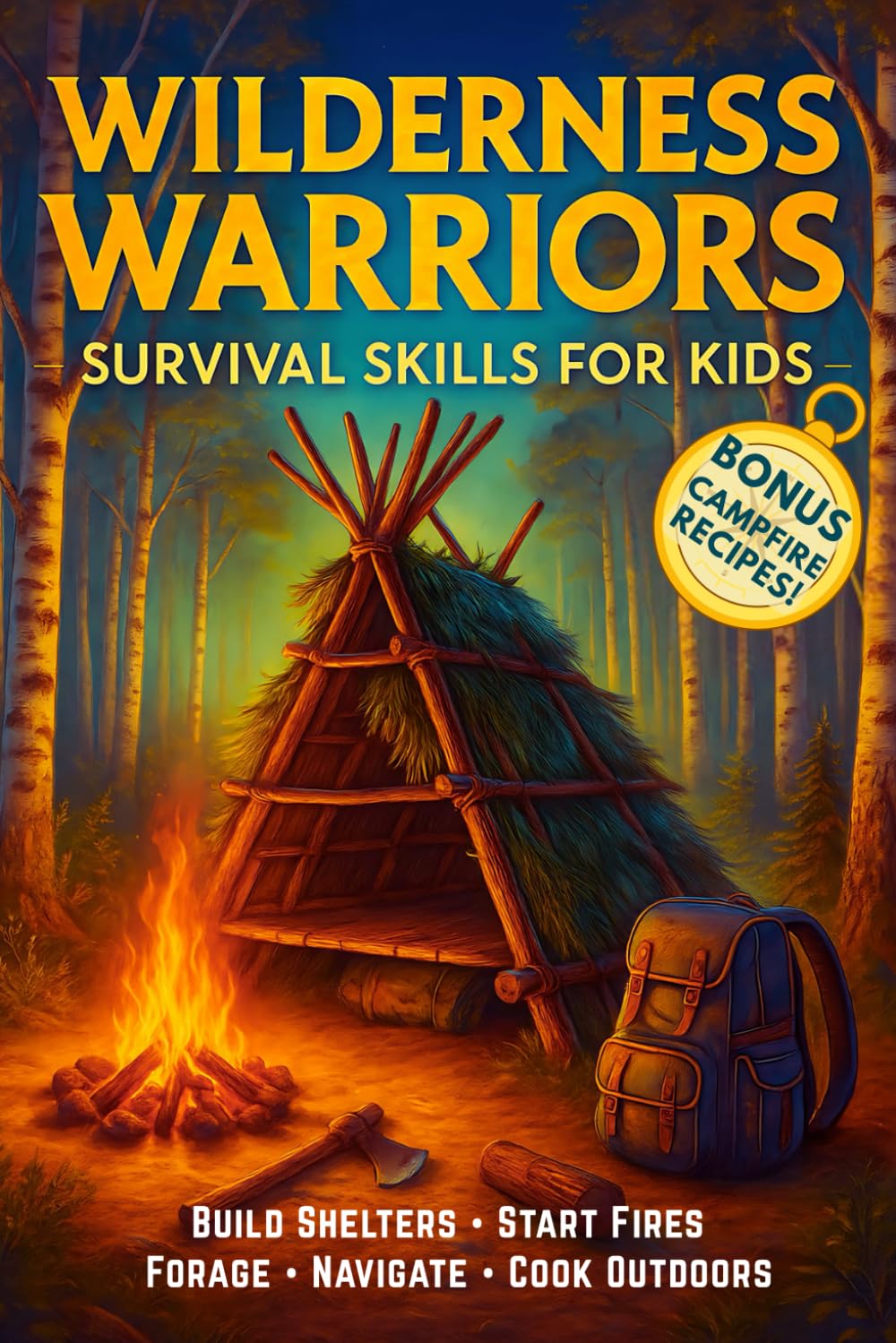 Wilderness Warriors is a hands-on guide for kids ages 8–12 who want to explore nature, stay safe, and learn real-world skills like bushcraft, shelter building, and campfire cooking — all while having serious fun.