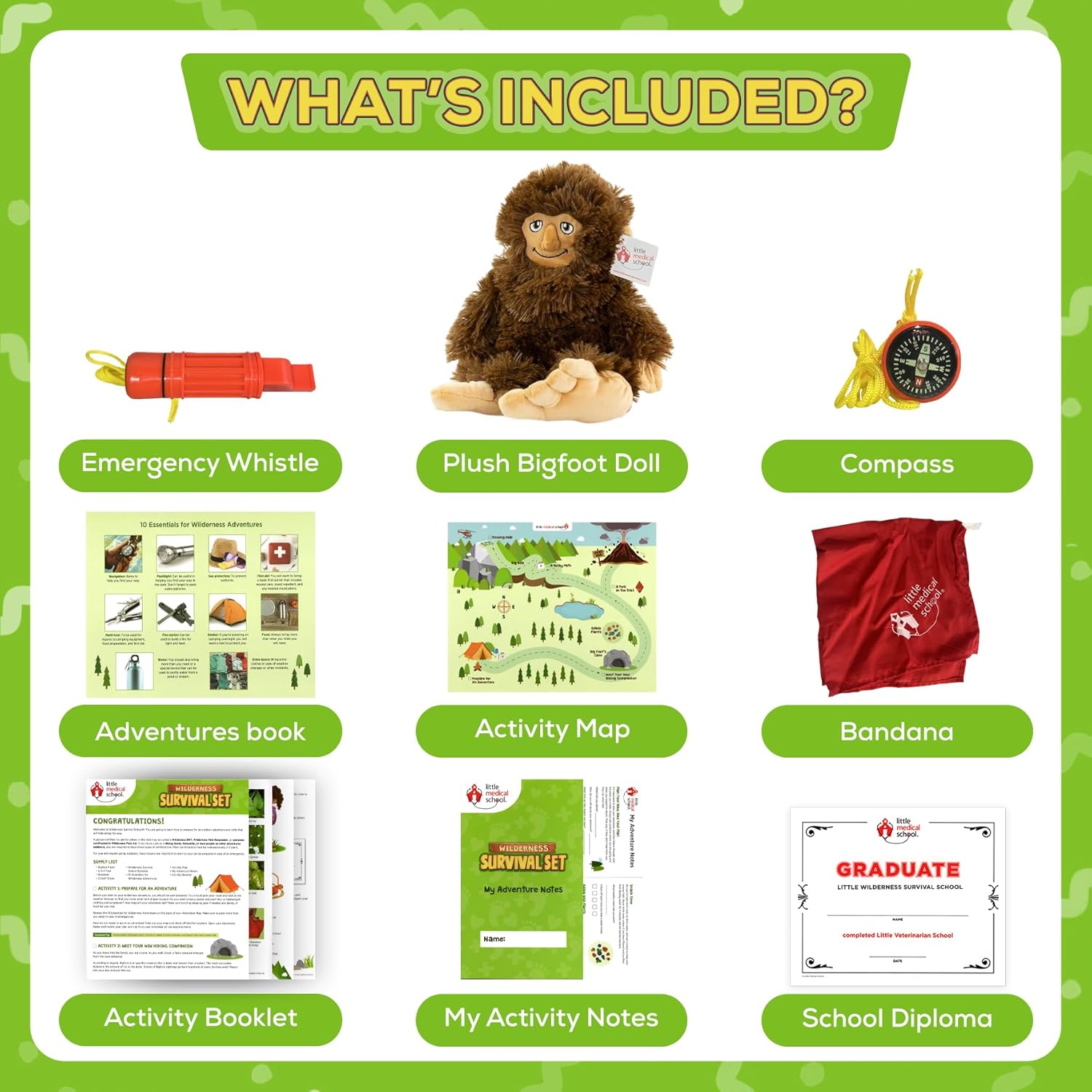 Interactive Learning: Includes a Bigfoot toy, compass, whistle, signal mirror, and an activity map for hands-on exploration.